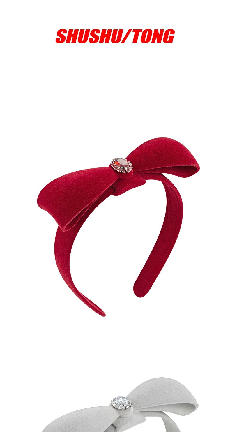 SHUSHU/TONG 植绒蝴蝶结发箍 20376NNNYLRED