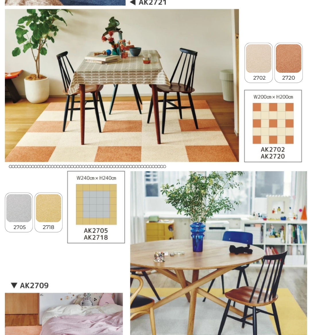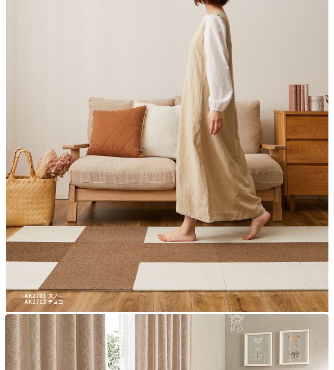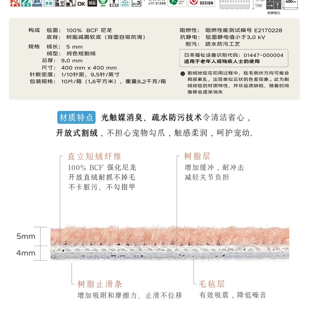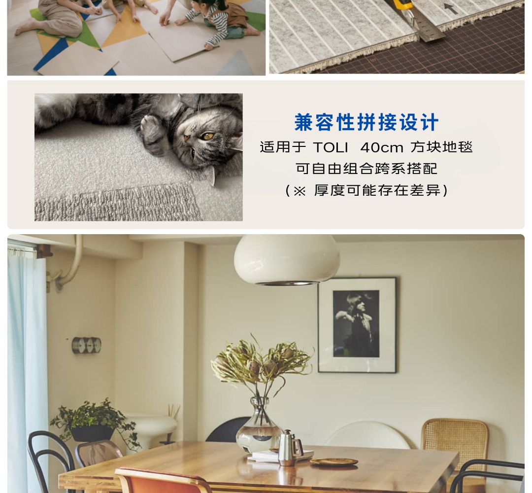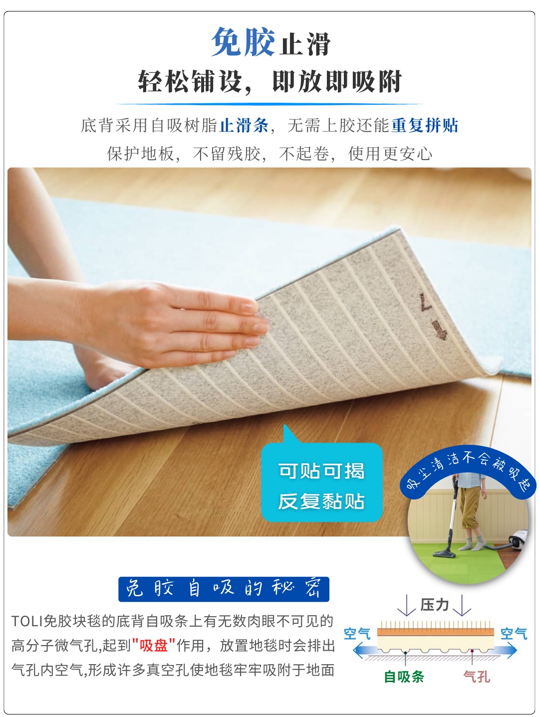 日本进口东理TOLI地毯日式自粘家用正方形卧室客厅拼接地垫