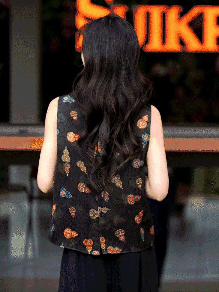 还有这款两面可穿福芦马甲小衫,当作背心可正反面两种穿法;可以解开扣子,当作马甲外搭。