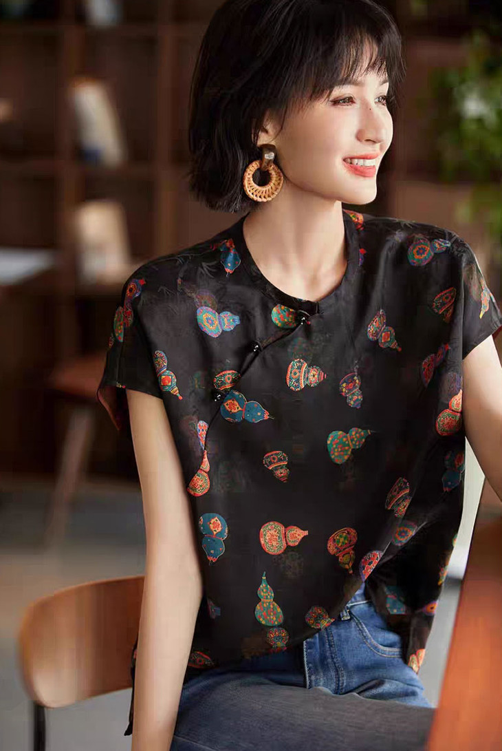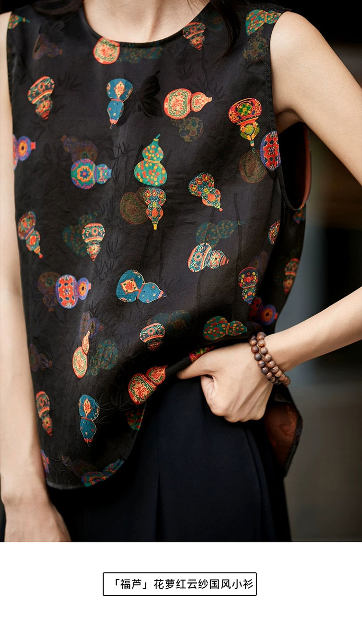 福芦花萝红云纱国风小衫【3-5天发货】纯植物染色+手工晾晒工艺 八宝葫芦纹美炸了!