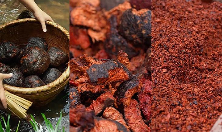 ▲右图为衣服内里颜色和质感,也是红云纱所呈现犹如往下般褐红色。