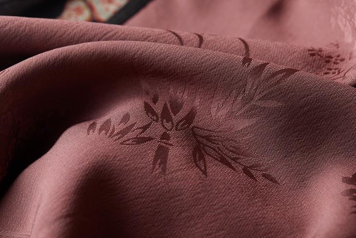 少了过泥环节的红云纱,手感比缎面有筋骨,但又比一般的香云纱更轻盈温柔,很适合秋日穿着。