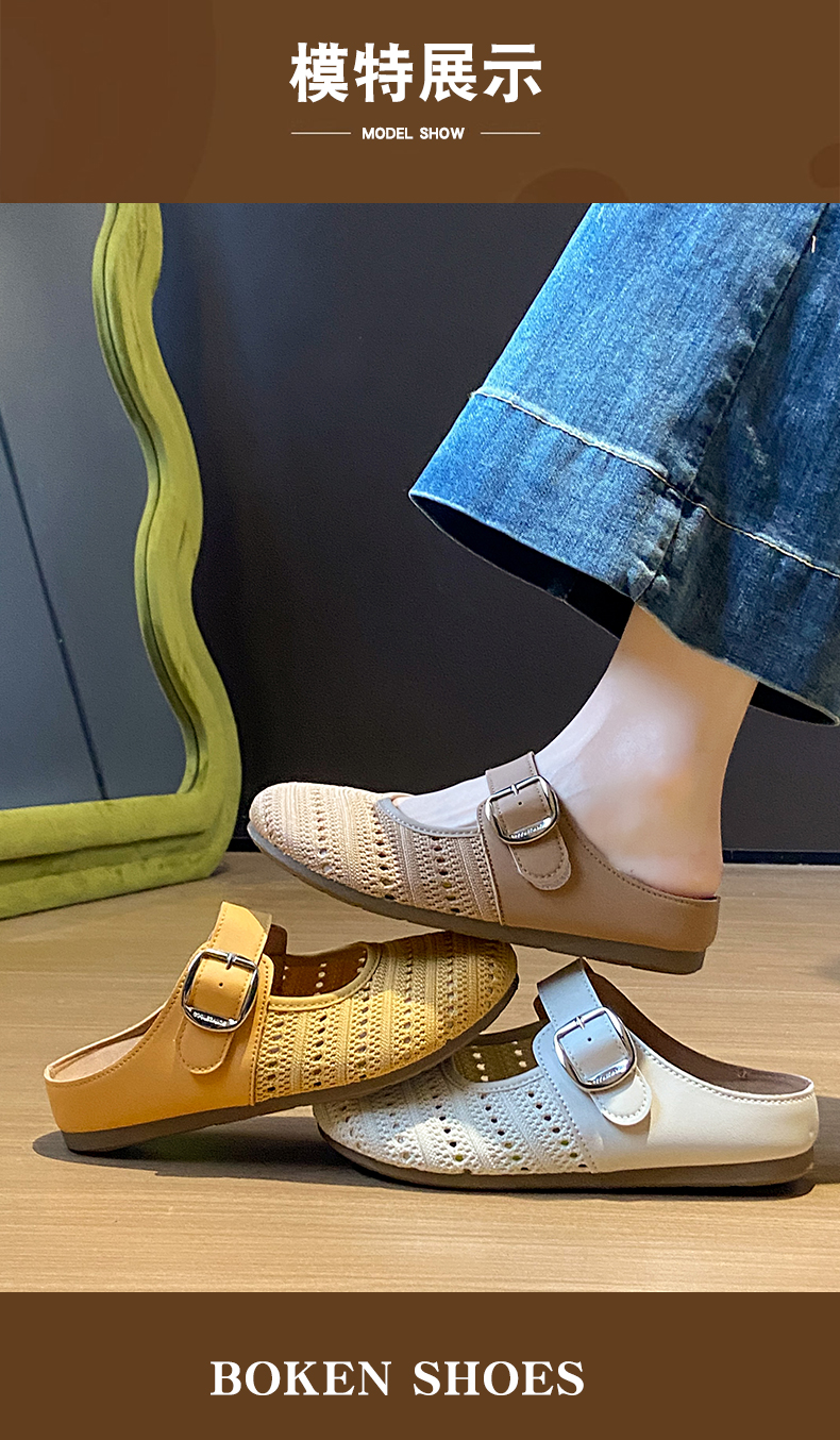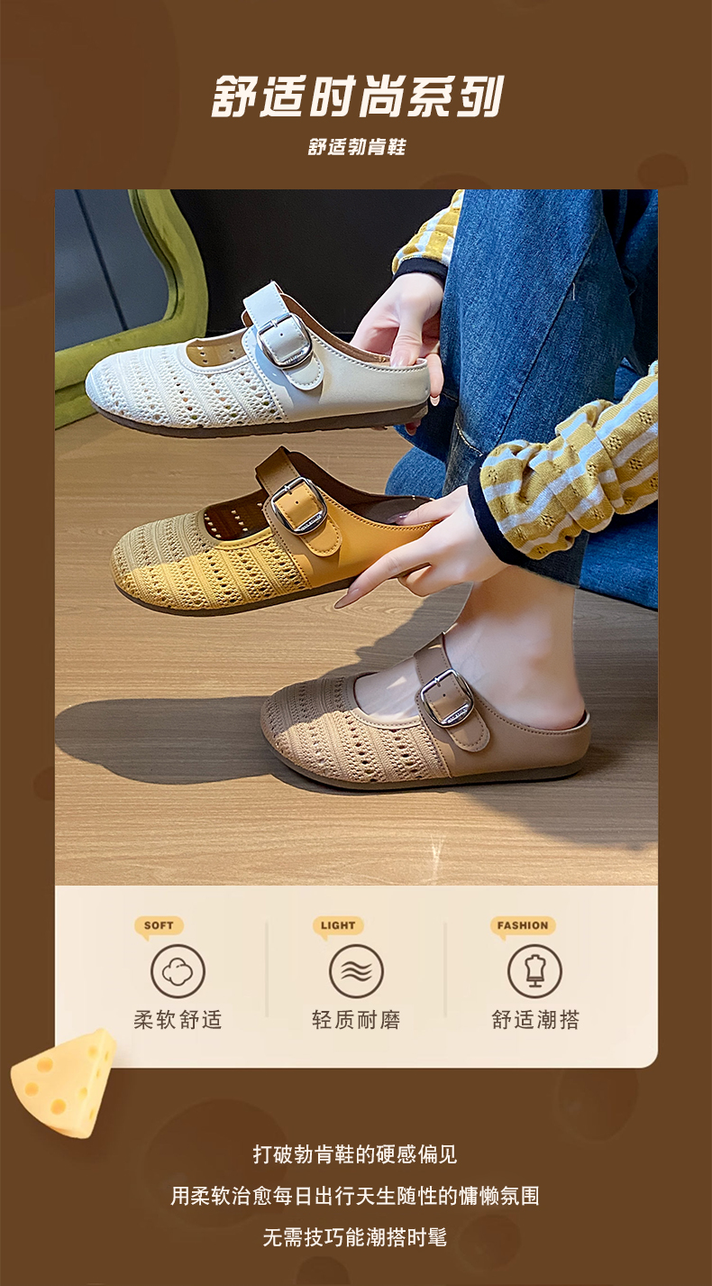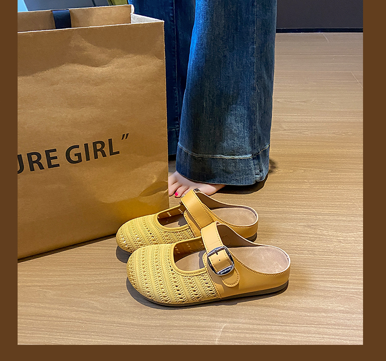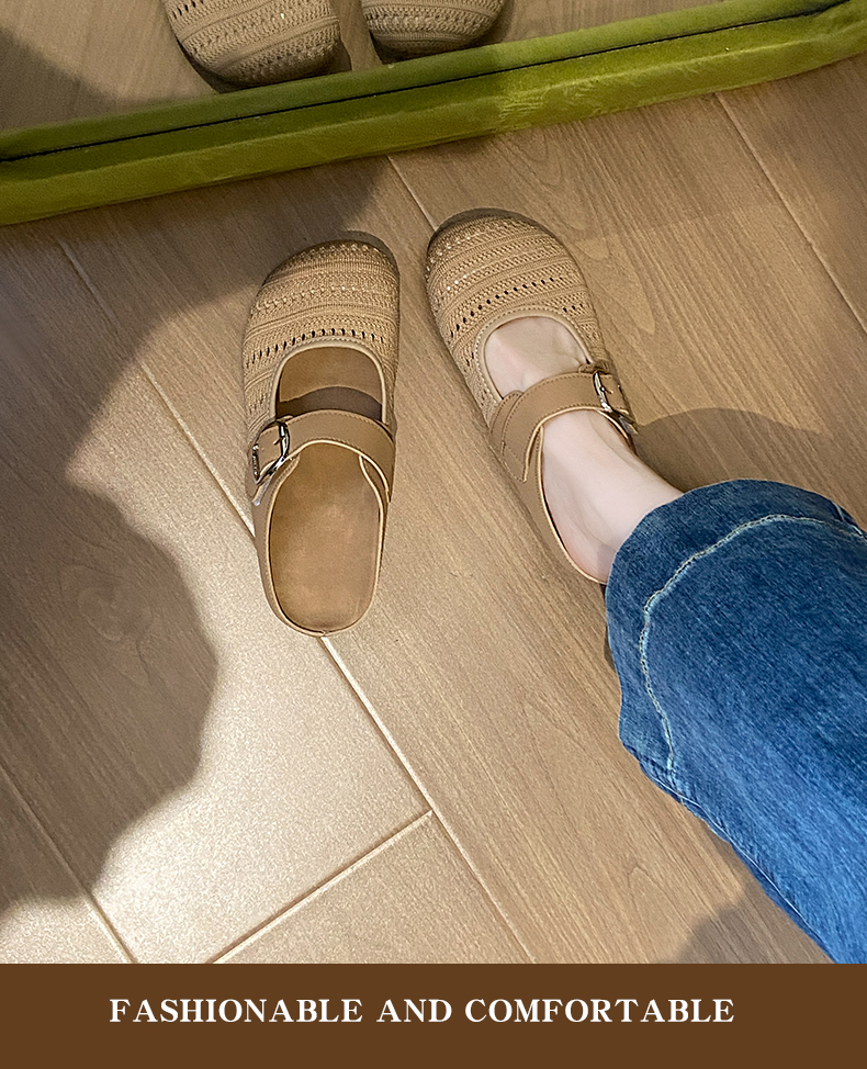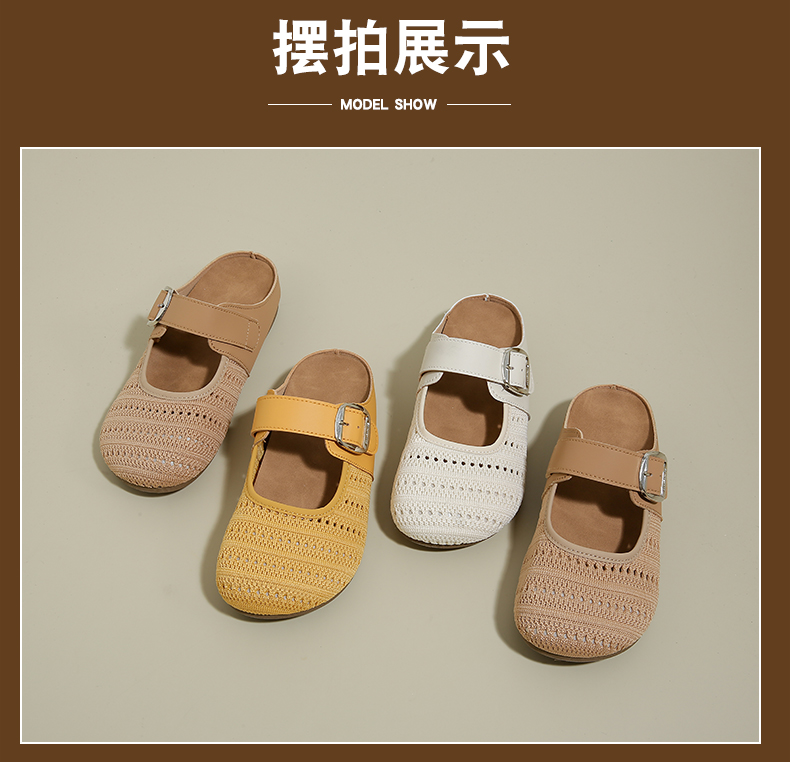 【复古时尚 透气舒适 隐形增高】特妮娜小香风飞织凉鞋懒人勃肯鞋 鞋面镂空网眼设计