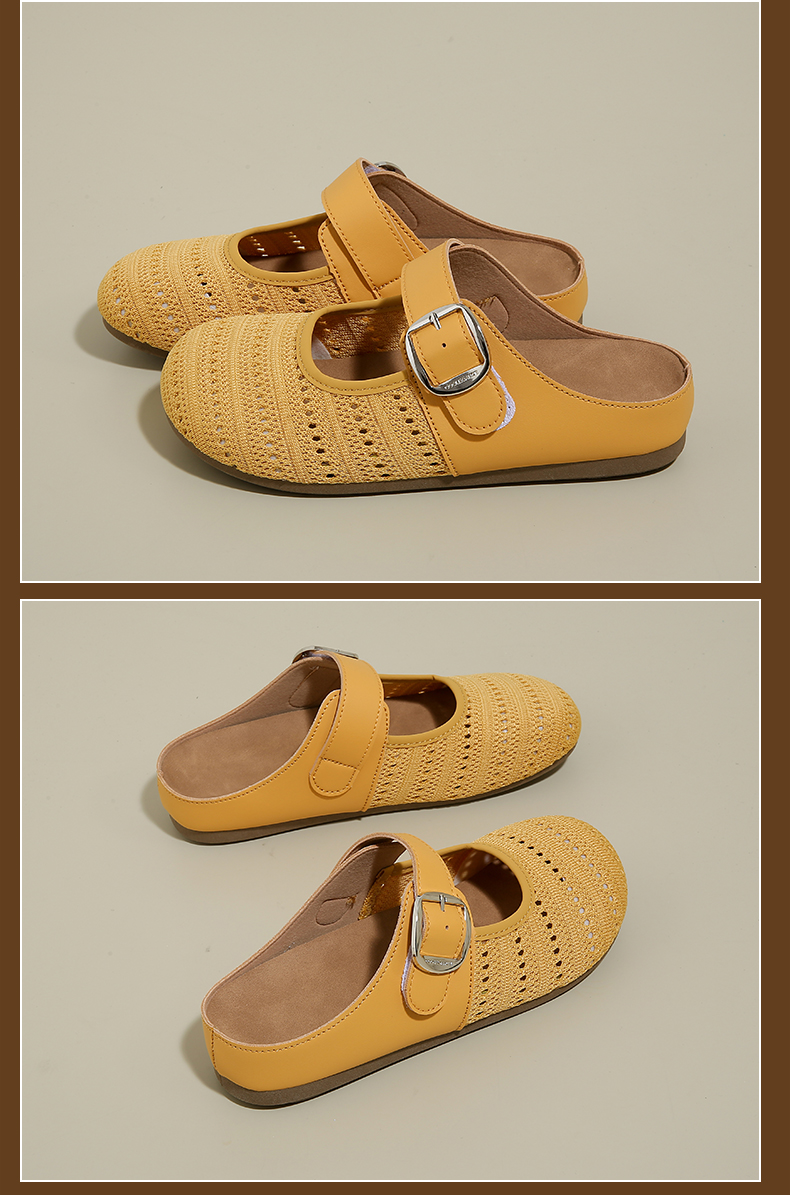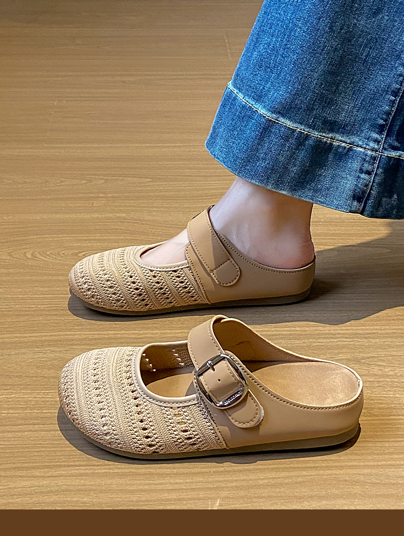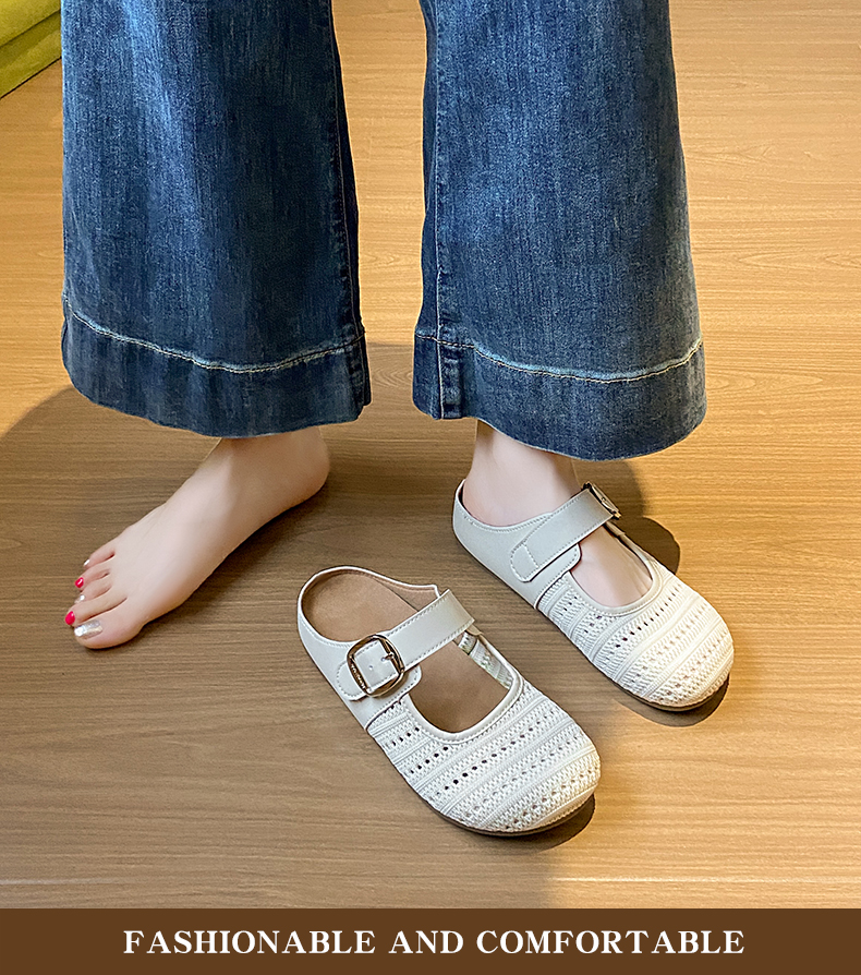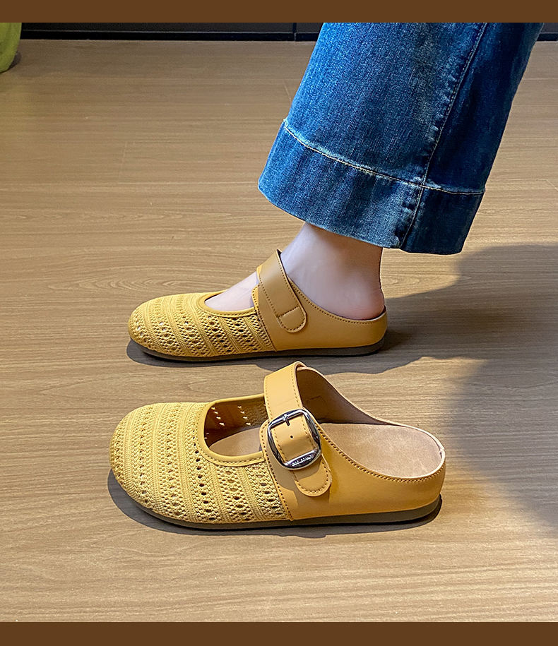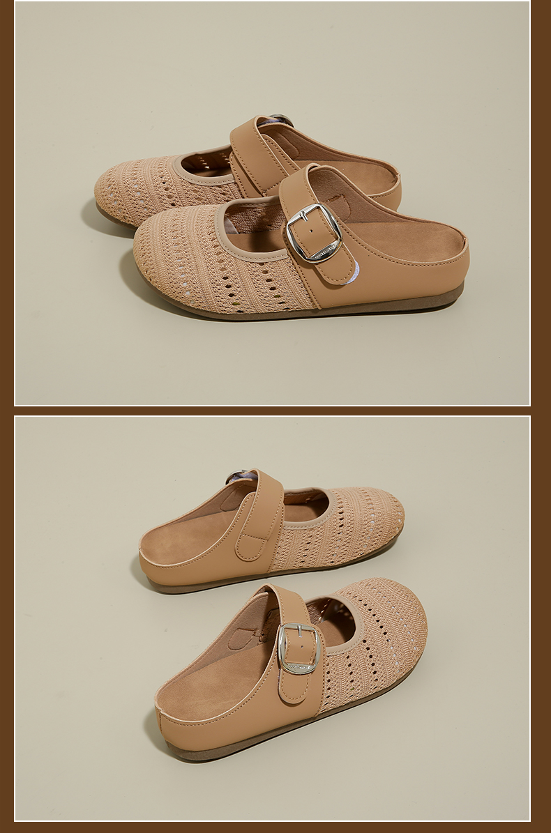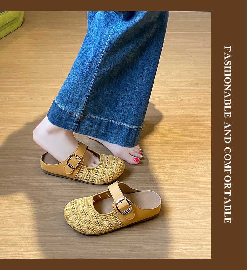 【复古时尚 透气舒适 隐形增高】特妮娜小香风飞织凉鞋懒人勃肯鞋 鞋面镂空网眼设计