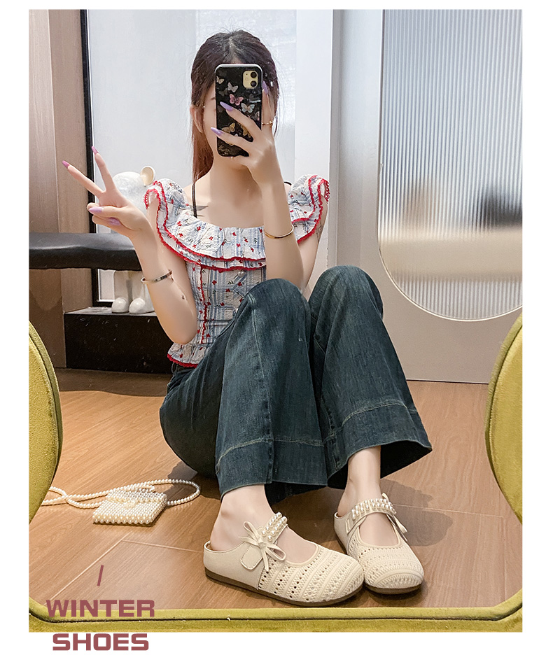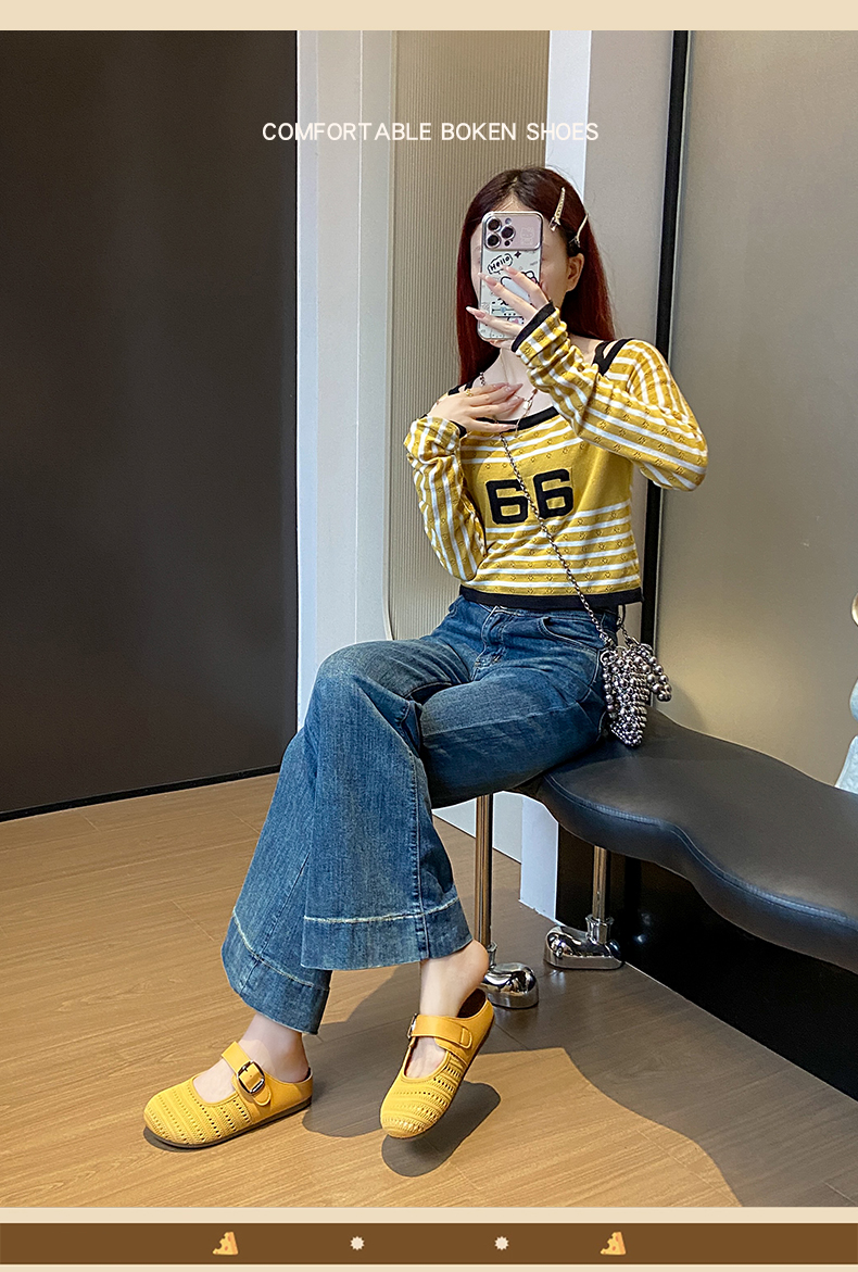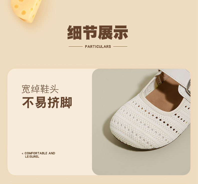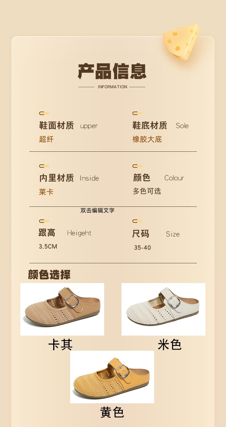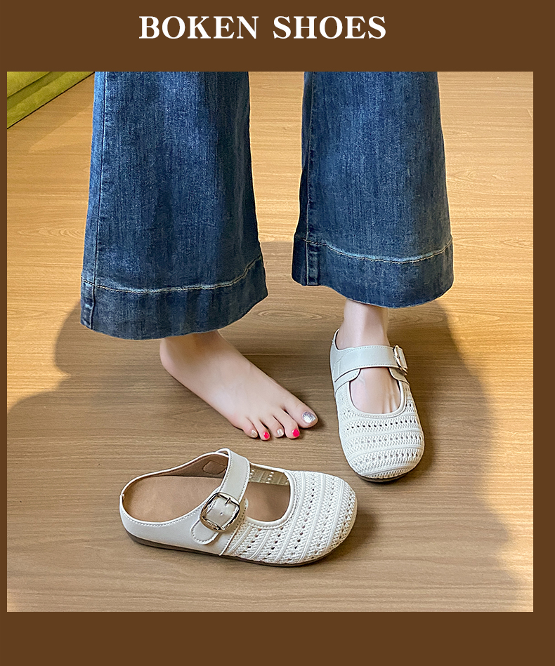 【复古时尚 透气舒适 隐形增高】特妮娜小香风飞织凉鞋懒人勃肯鞋 鞋面镂空网眼设计