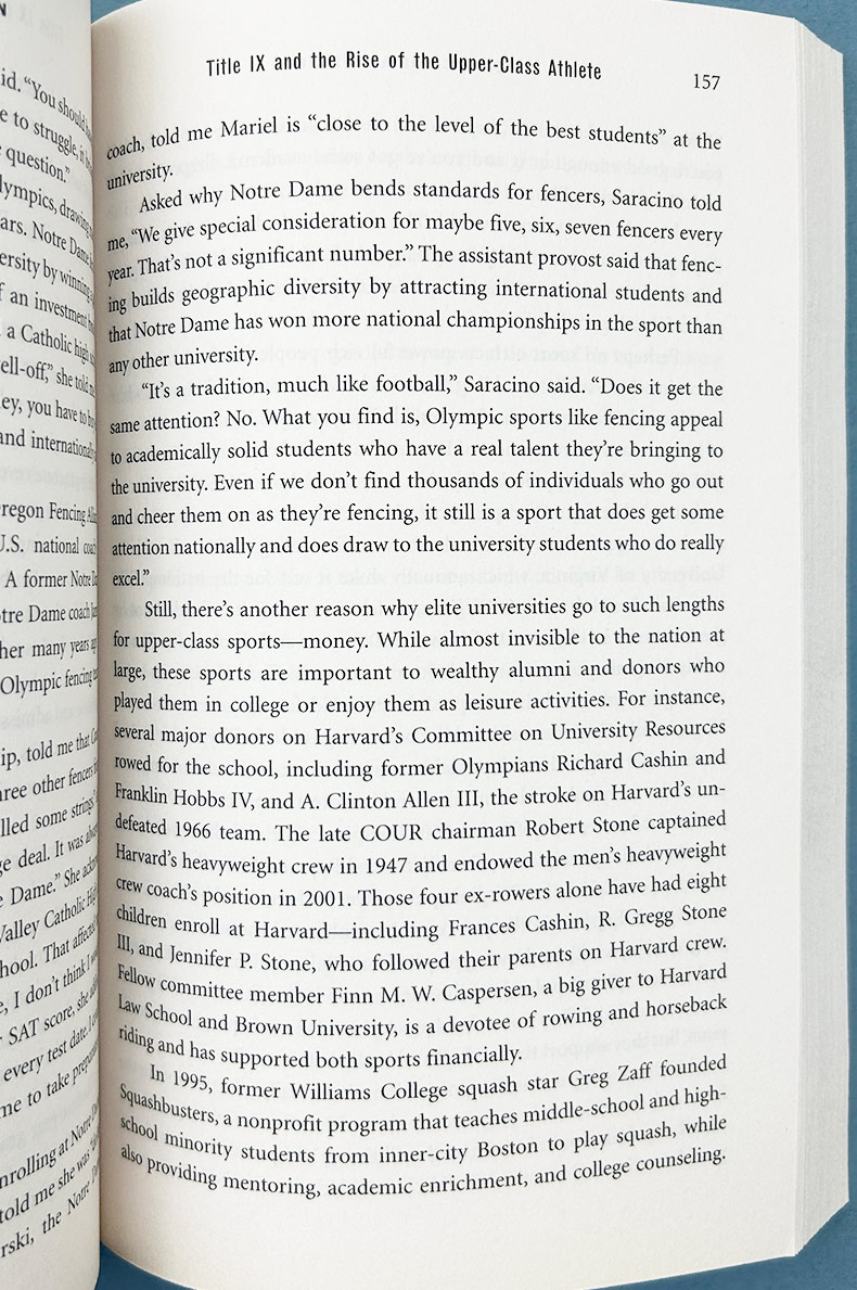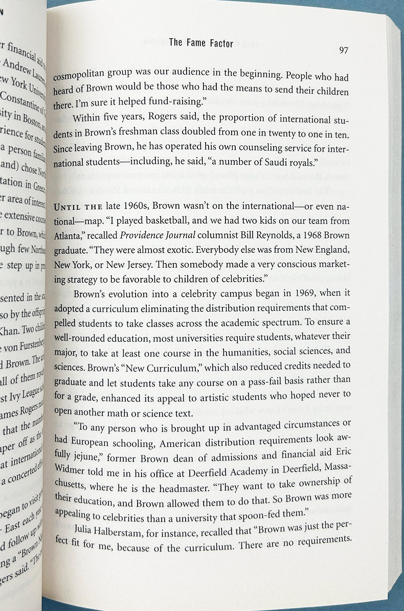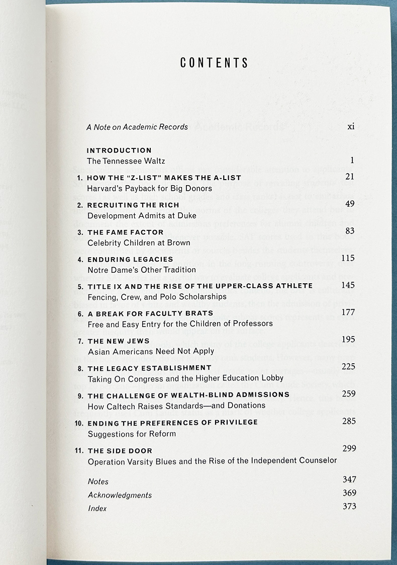 Based on two years of investigative reporting and hundreds of interviews with students, parents, school administrators, and admissions personnel—some of whom risked their jobs to speak to the author—in The Price of Admission, Golden names names, along with grades and test scores. He reveals how the sons of former vice president Al Gore, one-time Hollywood power broker Michael Ovitz, and Senate Majority Leader Bill Frist leapt ahead of more deserving applicants at Harvard, Brown, and Princeton. He explores favoritism at the Ivy Leagues, Duke, the University of Virginia, and Notre Dame, among other institutions. He reveals that colleges hold Asian American students to a higher standard than whites; comply with Title IX by giving scholarships to rich women in “patrician sports” like horseback riding, squash, and crew; and repay congressmen for favors by admitting their children. He also reveals that Harvard maintains a “Z-list” for well-connected but underqualified students, who are quietly admitted on the condition that they wait a year to enroll.