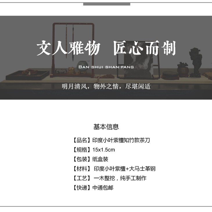 【品名】印度小叶紫檀知竹款茶刀