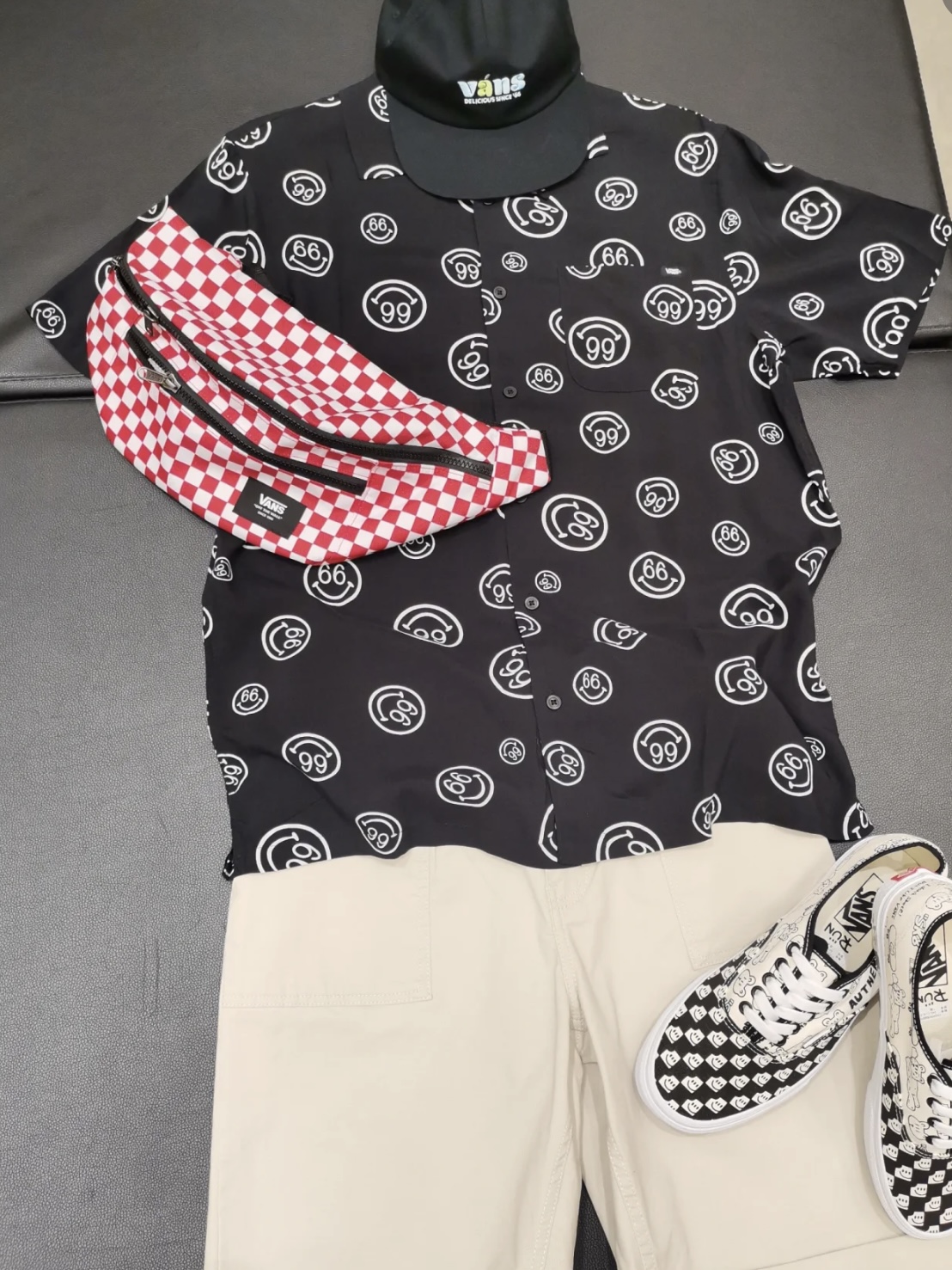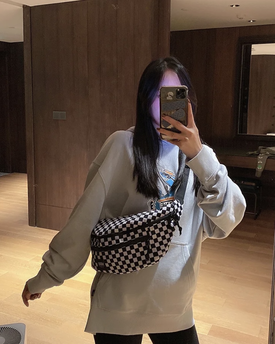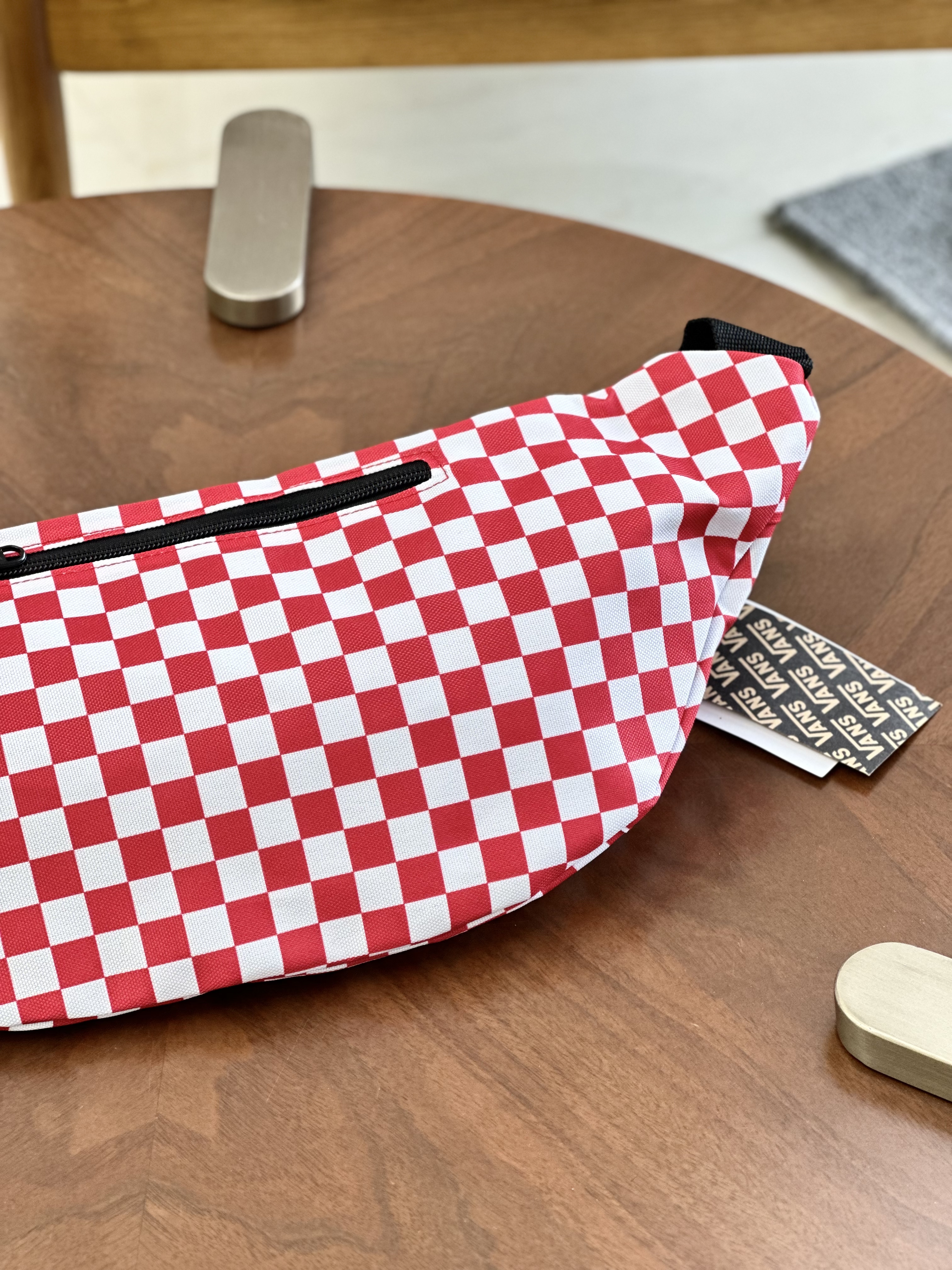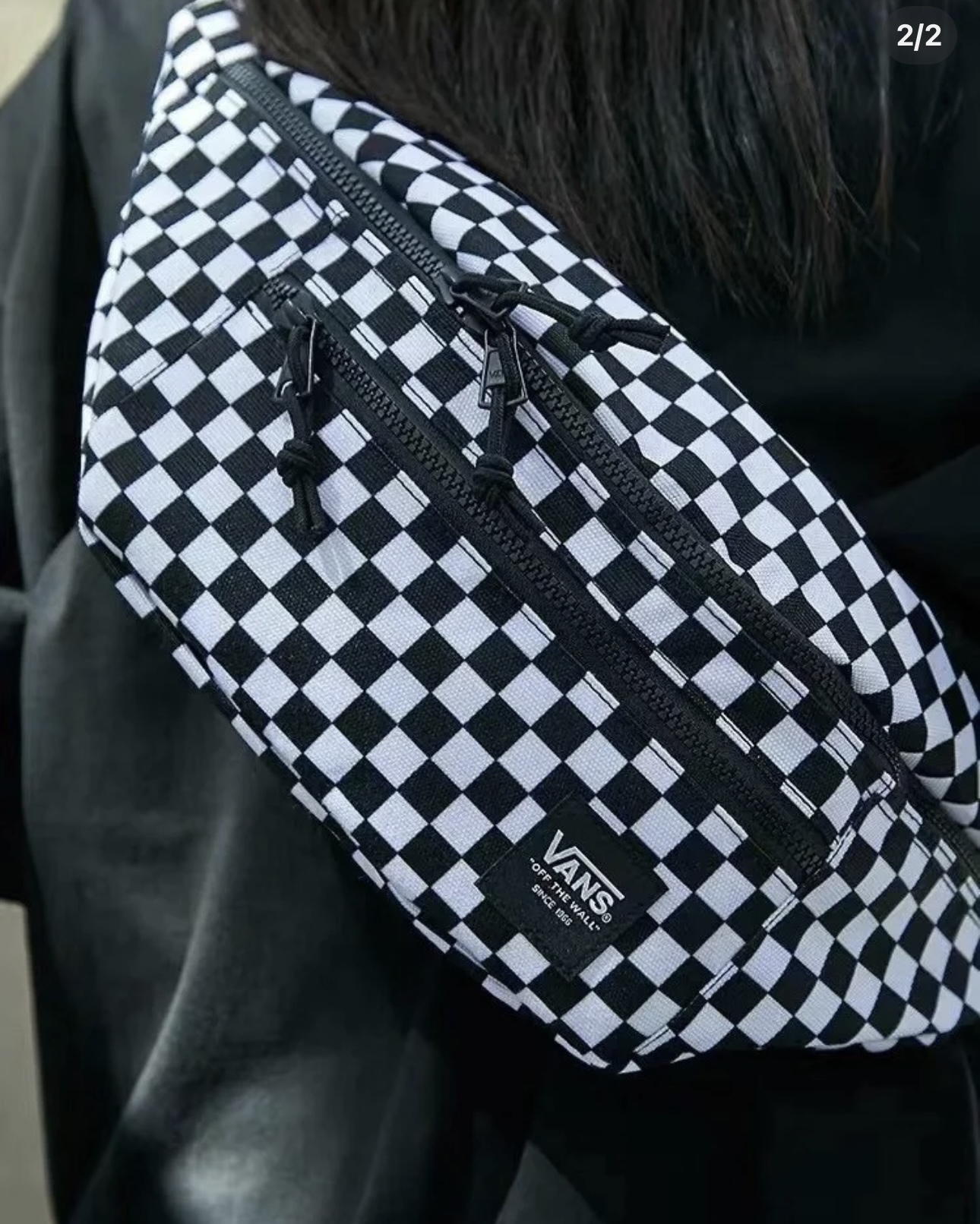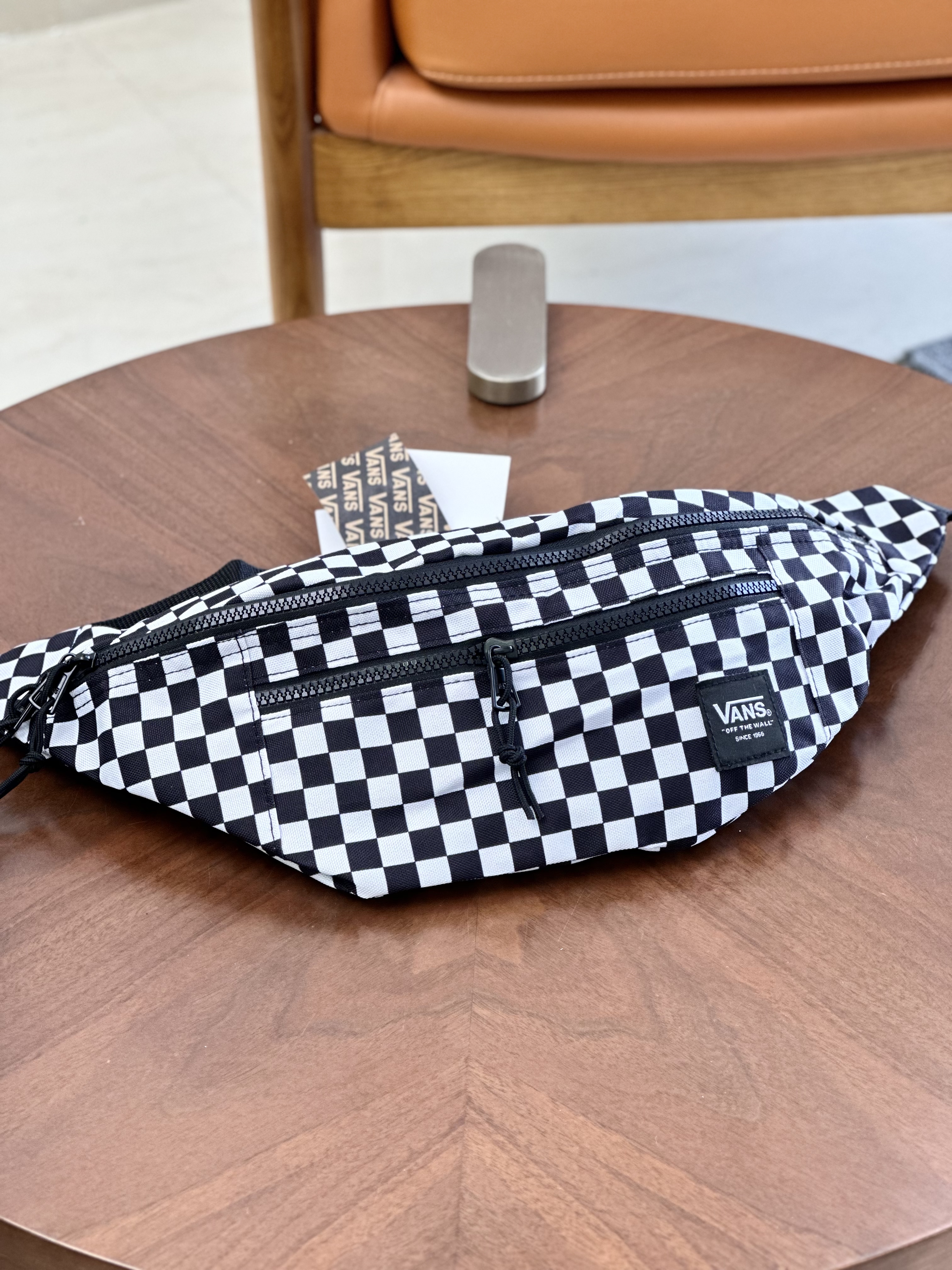 男女情侣款斜挎包,经典万斯复古棋盘格设计,高端帆布面料,细节完美。可用背带斜挎或系于腰部。吊牌水洗齐全!!!