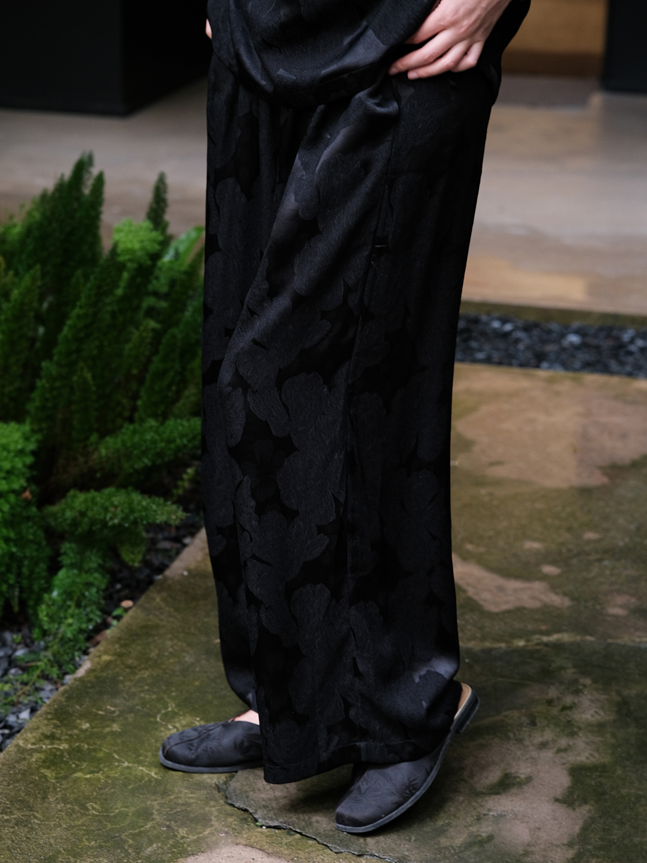 盛唐婧 |真丝冠乐皱烟墨直筒裤