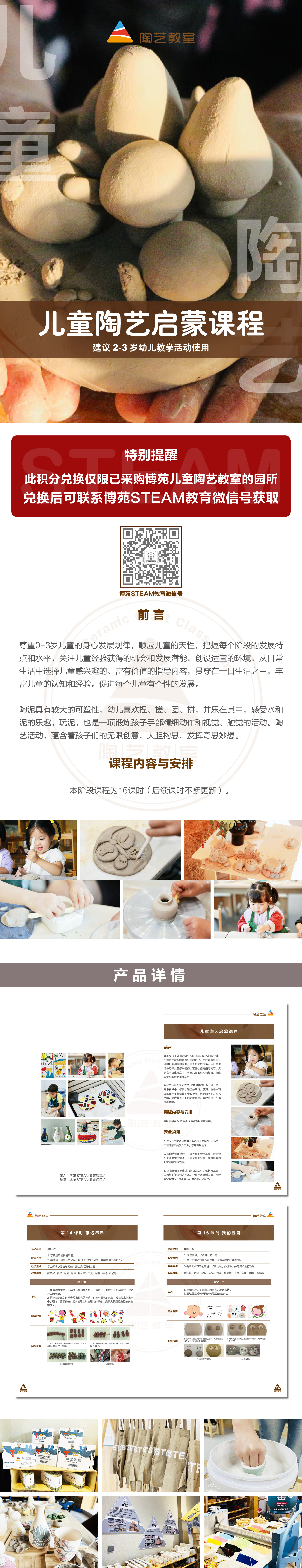 此积分兑换仅限已采购博苑儿童陶艺教室的园所 2-3岁儿童陶艺启蒙课程【联系客服索取电子版教案】