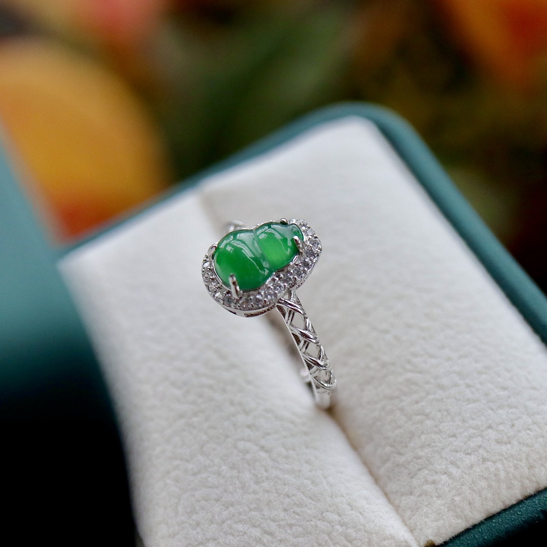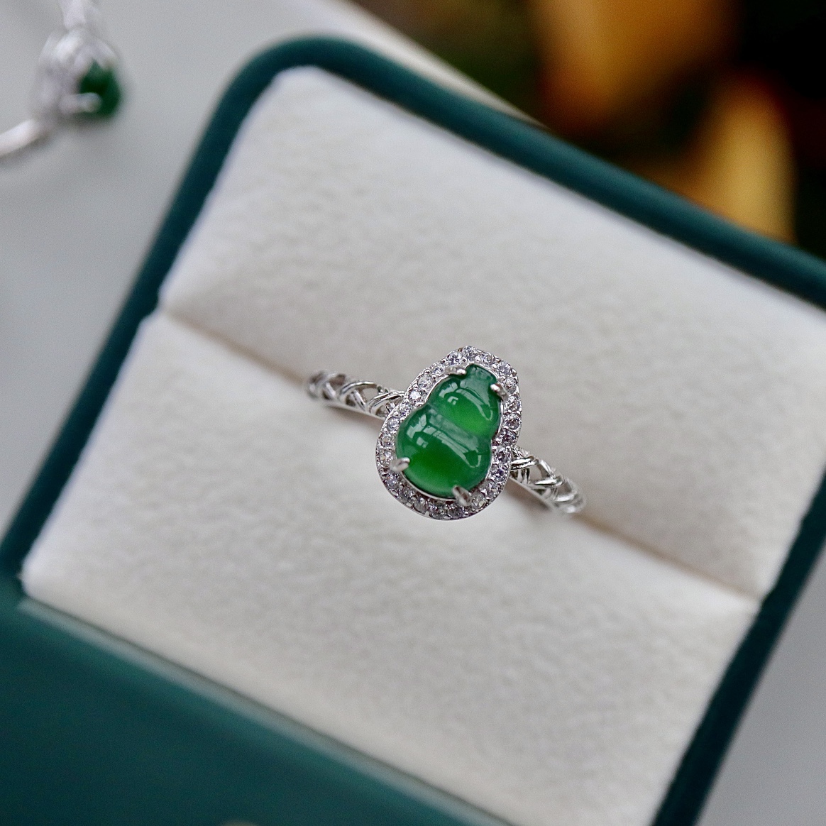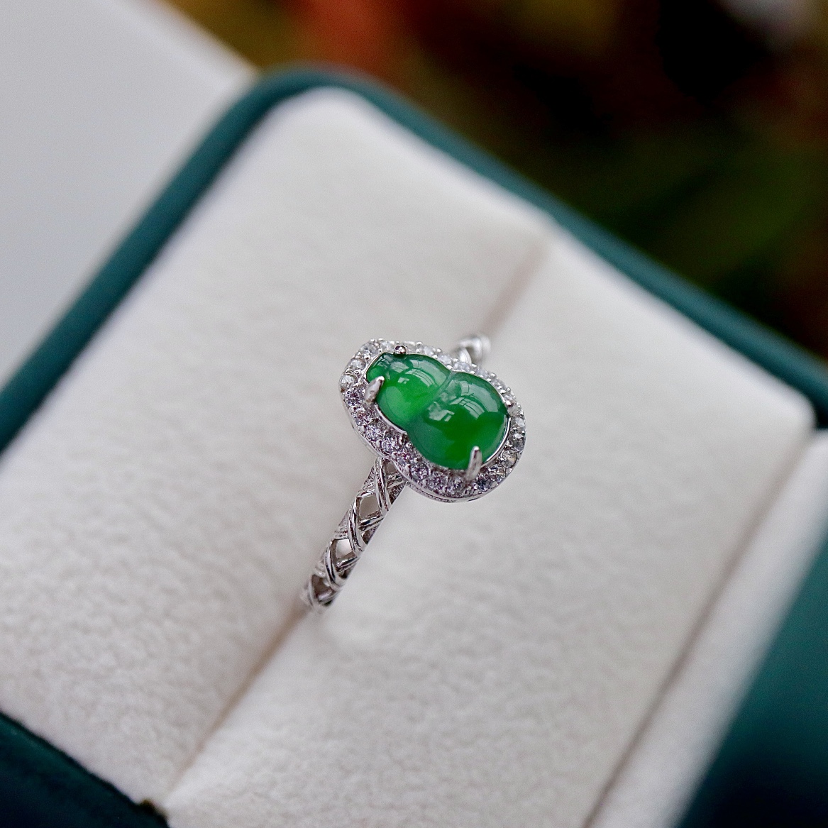 天然翡翠葫芦戒指 A货高冰阳绿 s925纯银 大气简约 满满的珠宝高级感