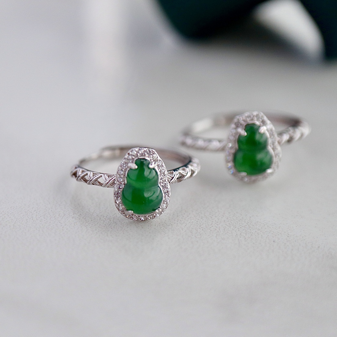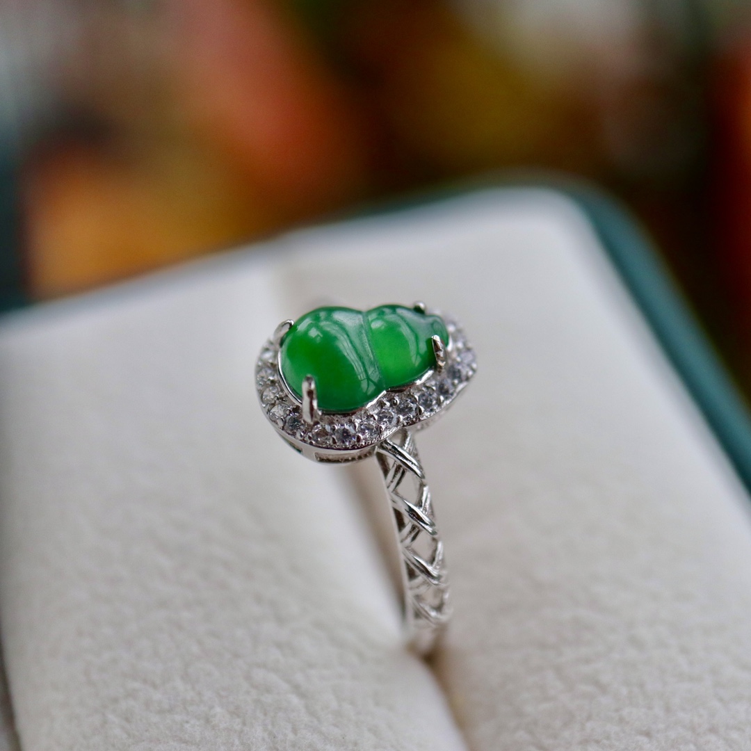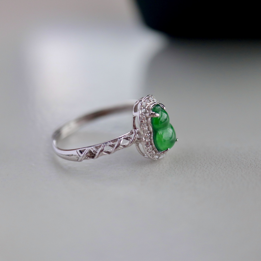 天然翡翠葫芦戒指 A货高冰阳绿 s925纯银 大气简约 满满的珠宝高级感