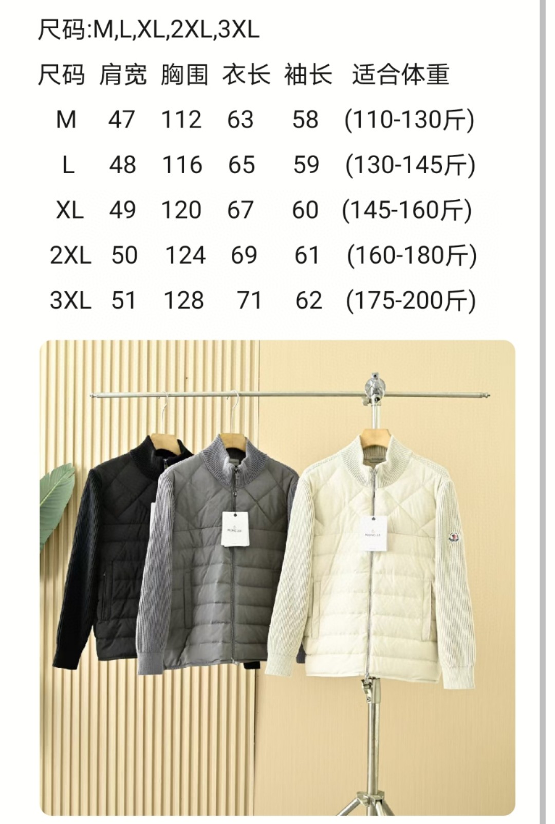 冬天的内搭神器!!!每年这个时候都会出几款毛衣拼羽绒。其实毛衣拼羽绒在常青款都是走基础风格,可以单穿还可以搭配叠穿,会更有层次感!!!前面是羽绒,背面和两个袖子都是羊毛混纺的面料,柔软细腻的针织感完全不扎人!这质感太赞了,绒朵大且细腻无梗,蓬松度十足!填充量足足的,保暖性能也不在话下!!!防风保暖,手感丝滑柔顺,挺括度好,上身不会显臃肿,拼接设计的常青款!