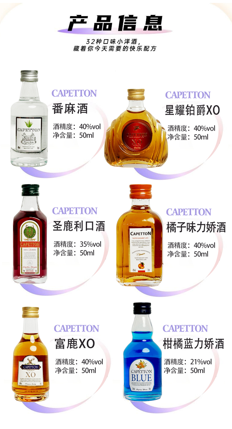 新热卖!卡佩顿小洋酒系列组合【微醺时刻】传统蒸馏工艺 多口味佳酿 礼盒装 50ml/瓶