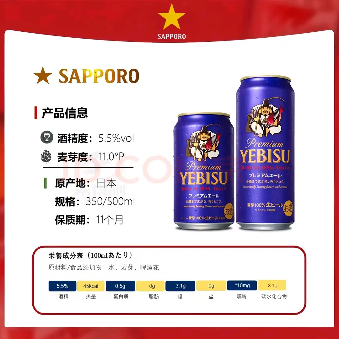 日本惠比寿全麦生啤酒 100%麦芽酿造 紫罐 350ml 5.5%vol