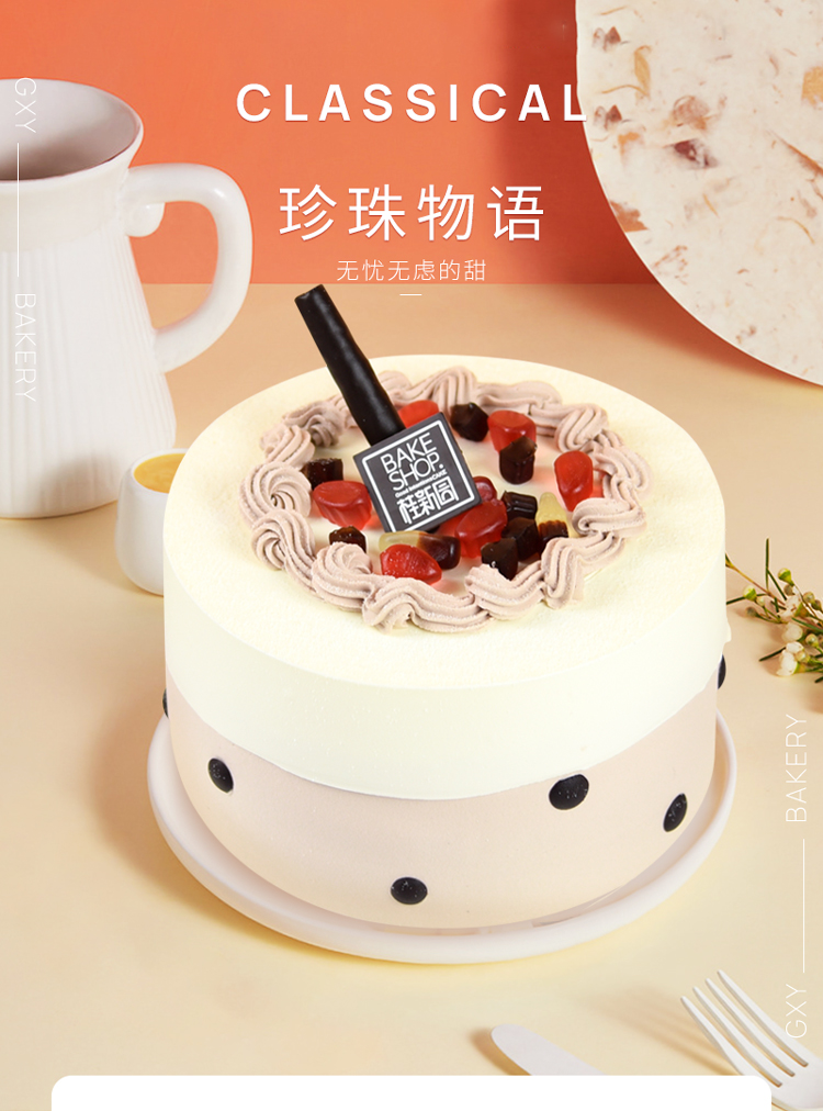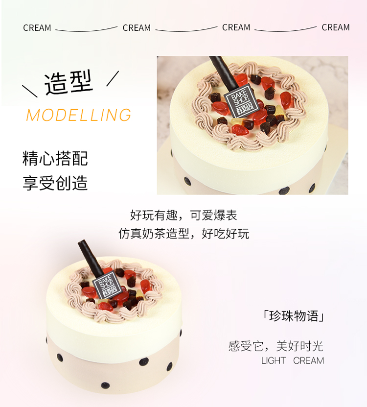 【珍珠物语】特色创意生日蛋糕—纯乳脂与牛奶奶油混合,巧克力味夹层口味升级,细腻香甜