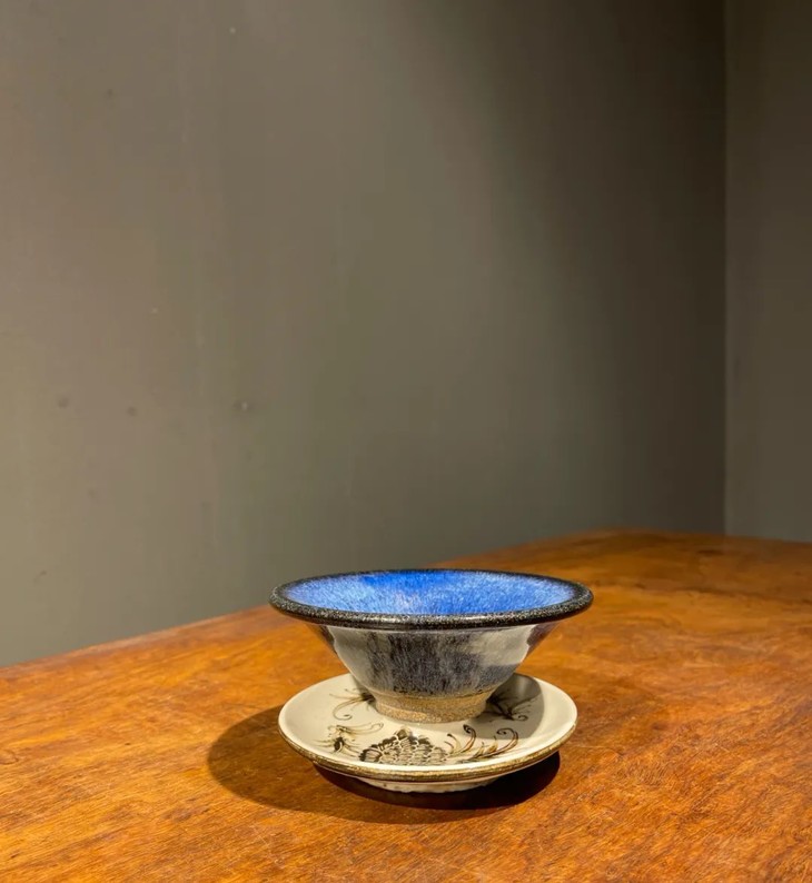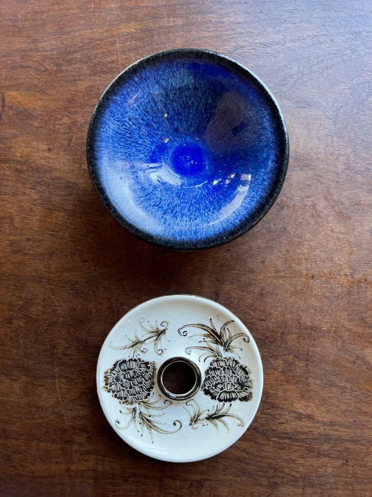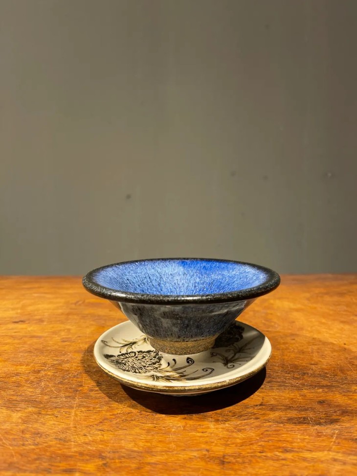 蓝曜变兔毫斑天目盏与黑白刻花盏托