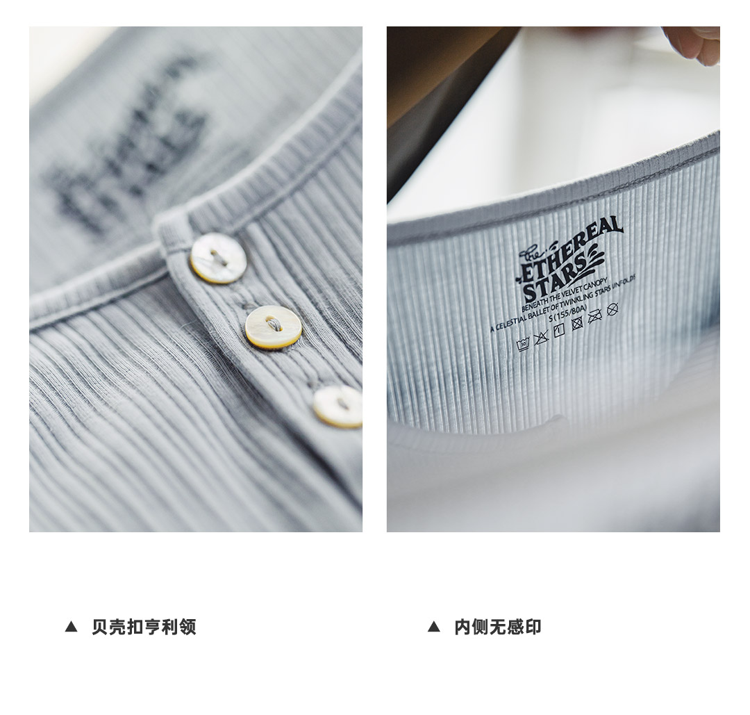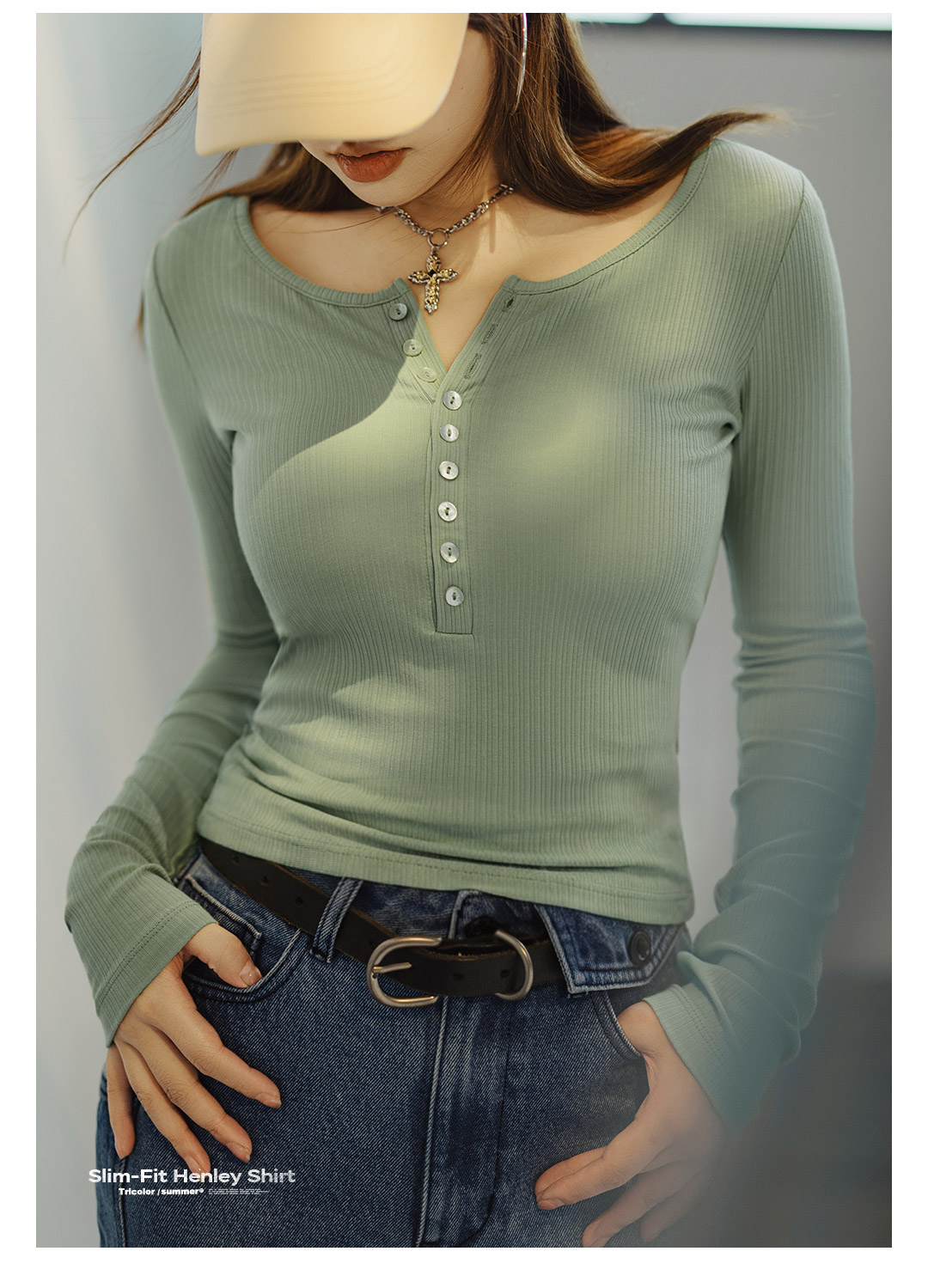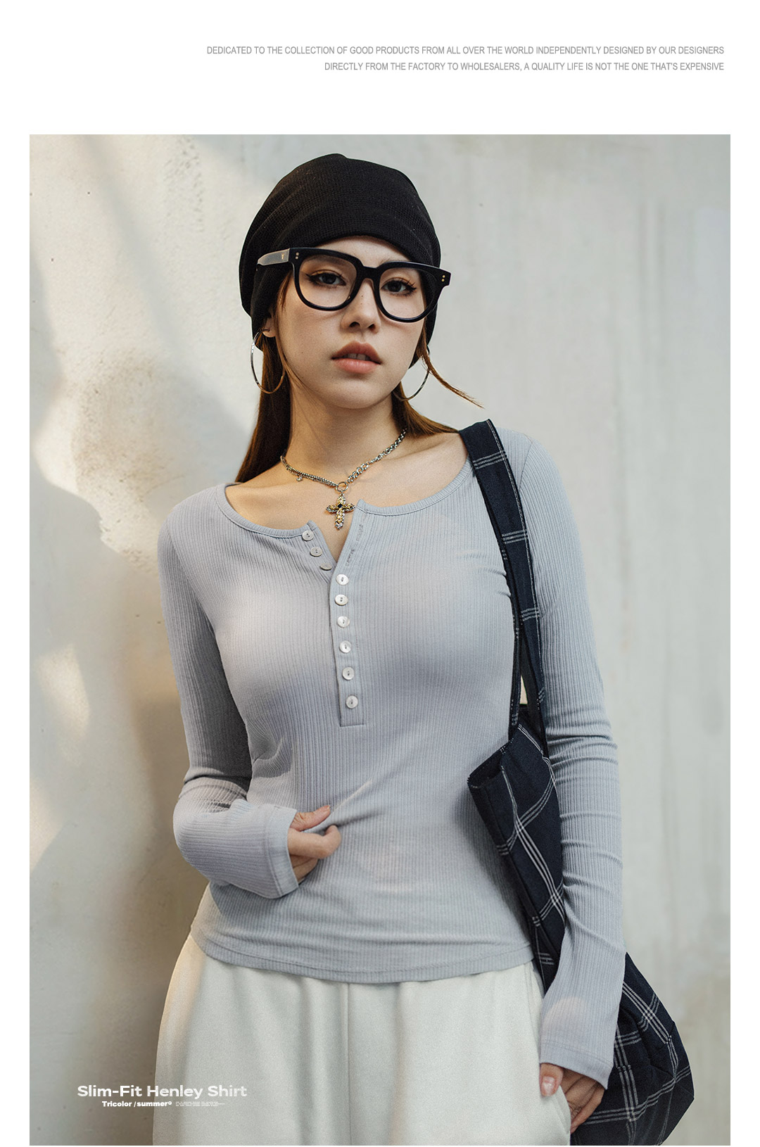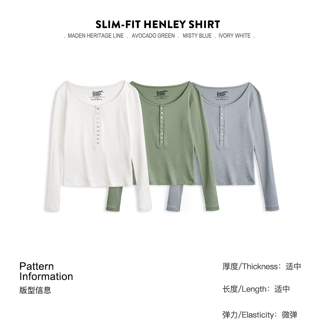 马登美式亨利衫针织打底衫修身内搭长袖T恤上衣2024秋季新款女