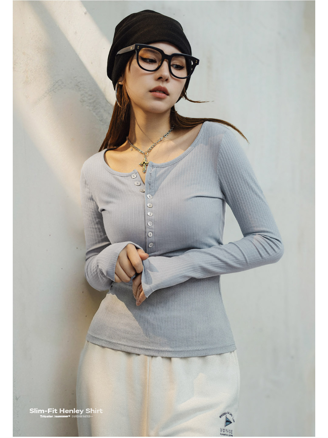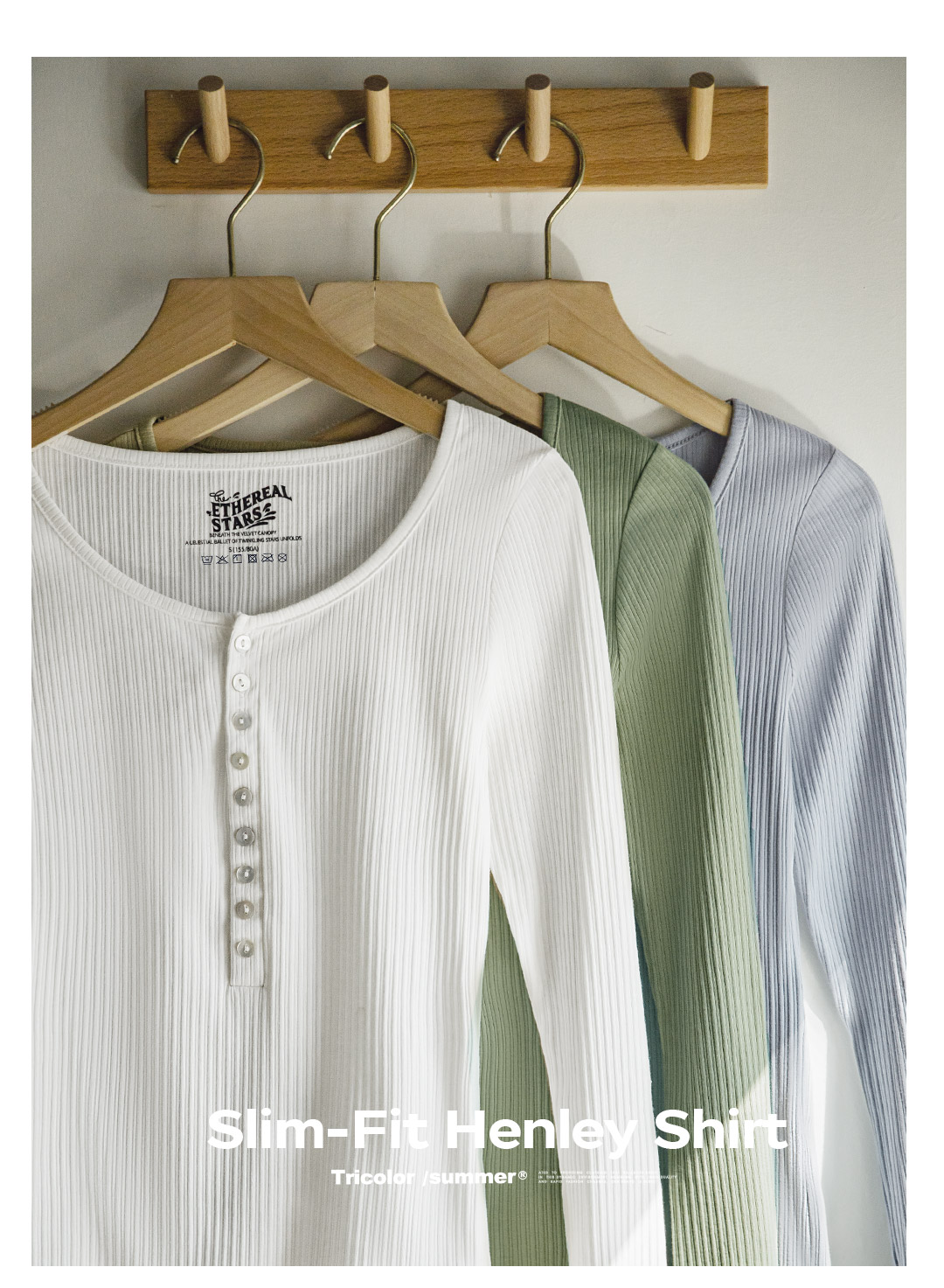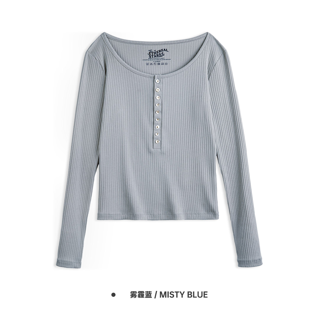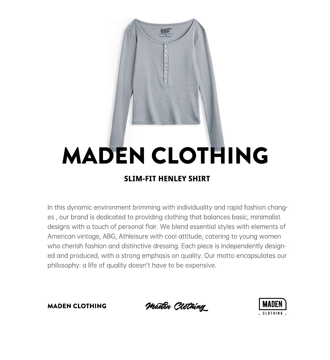 马登美式亨利衫针织打底衫修身内搭长袖T恤上衣2024秋季新款女