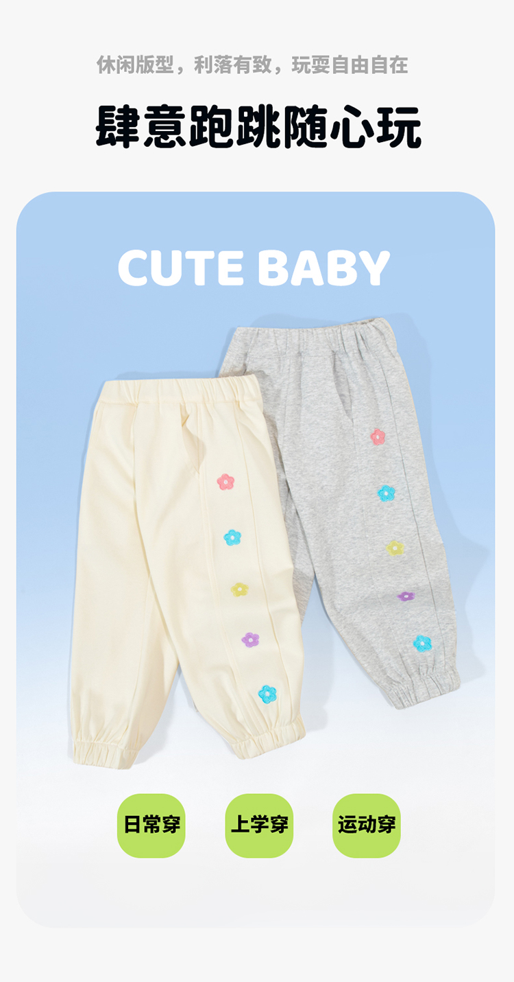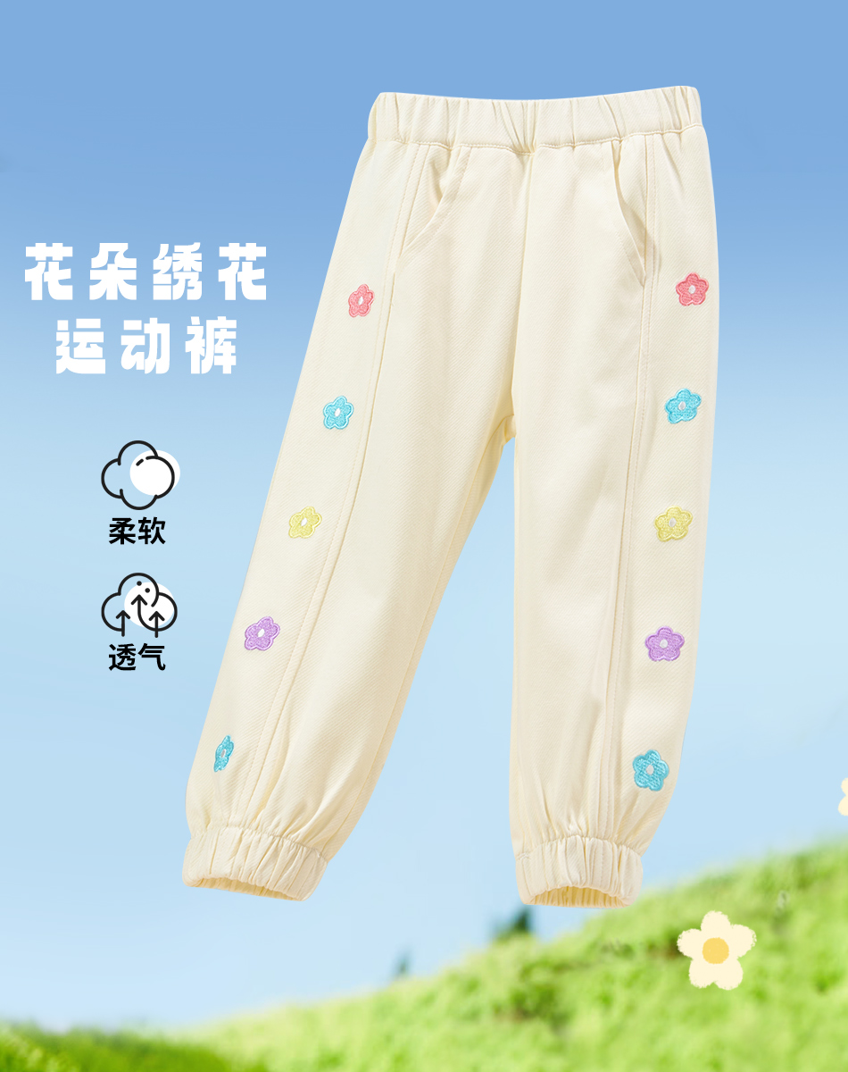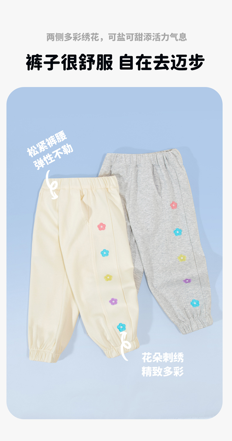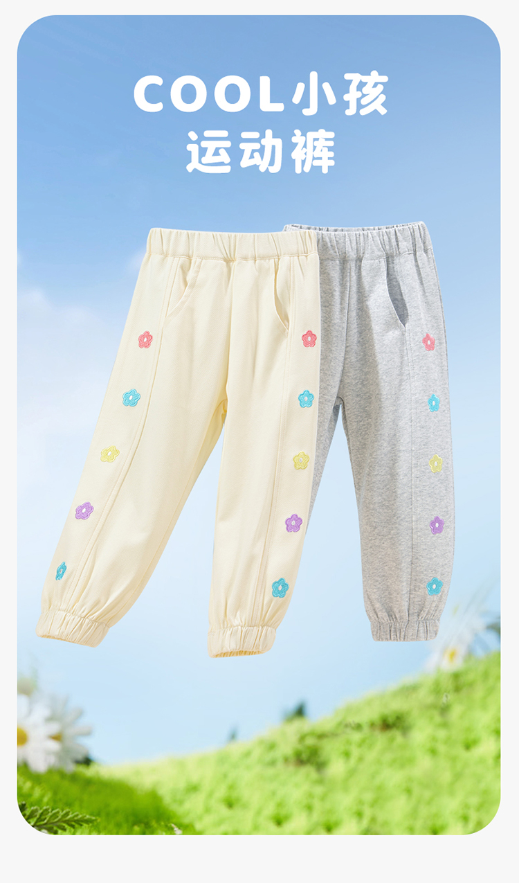 贝贝怡儿童运动裤春季新款女宝宝休闲束脚裤宽松中大童春秋裤子ZB1DK029