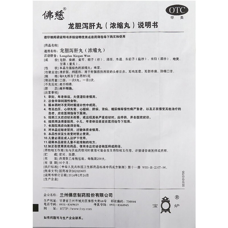 佛慈 龙胆泻肝丸 200丸 清肝胆 利湿热 用于头晕目赤、耳鸣耳聋