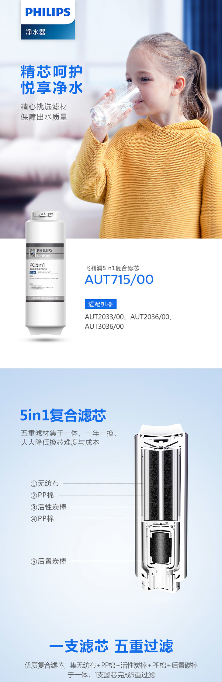 飞利浦(PHILIPS)Suez厨下净水器滤芯AUT715/00 适用:AUT2033/00 AUT2036/00 AUT2037/00 AUT3036/00 AUT3038