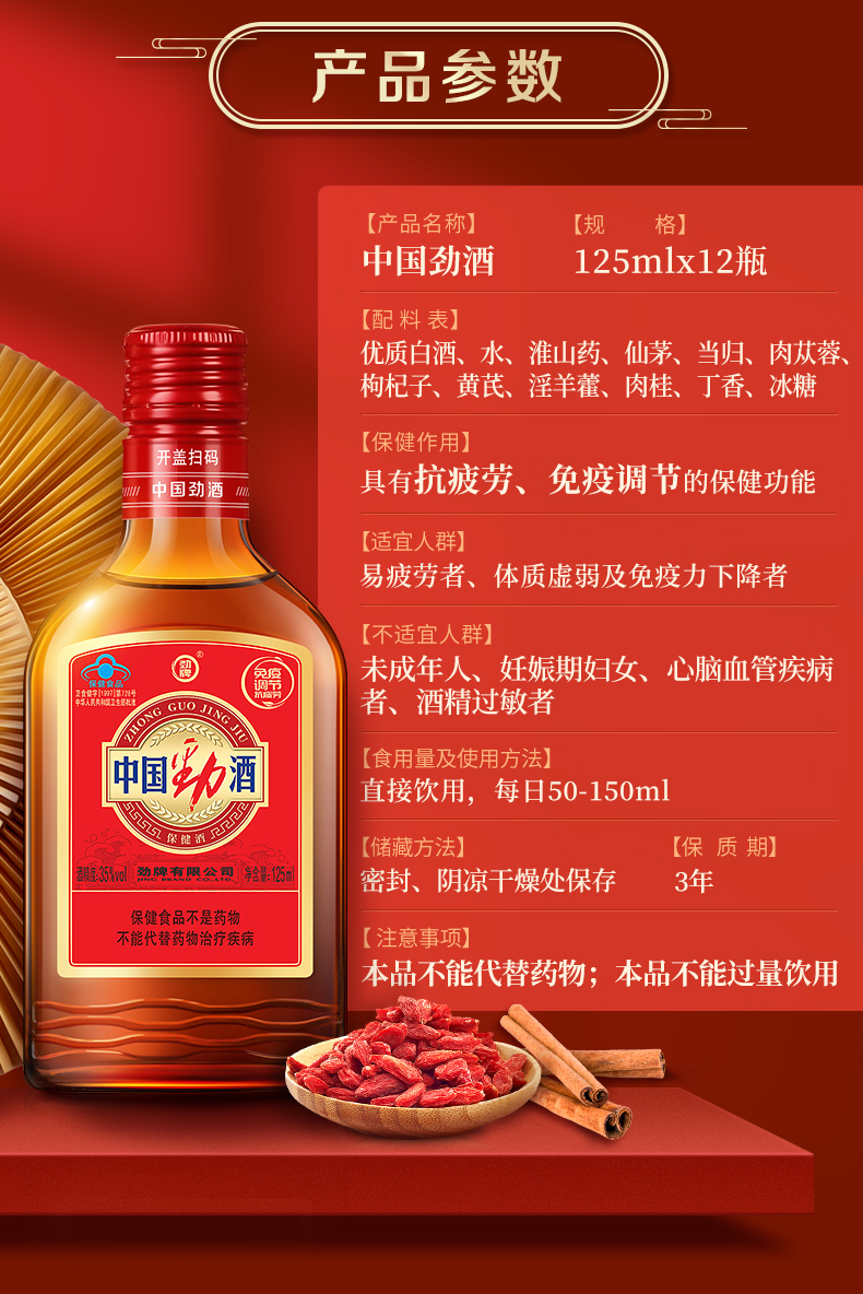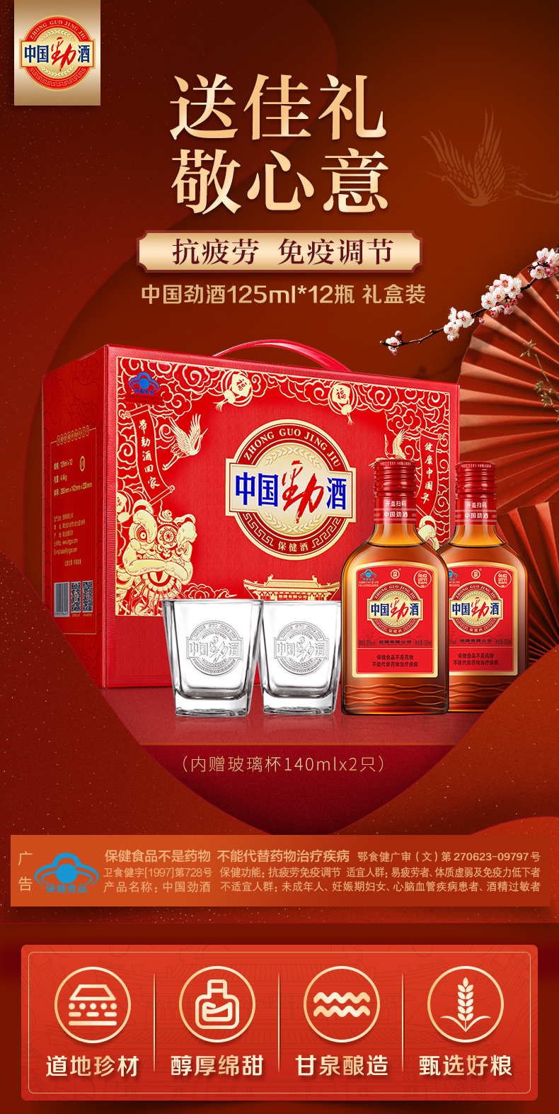 125ml35度中国劲酒礼盒12瓶礼盒内置赠品