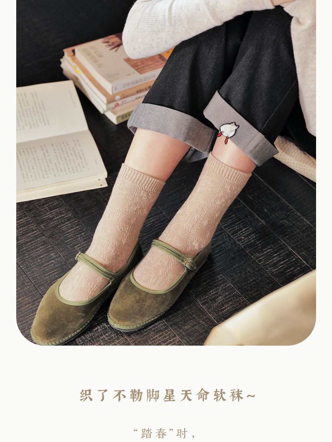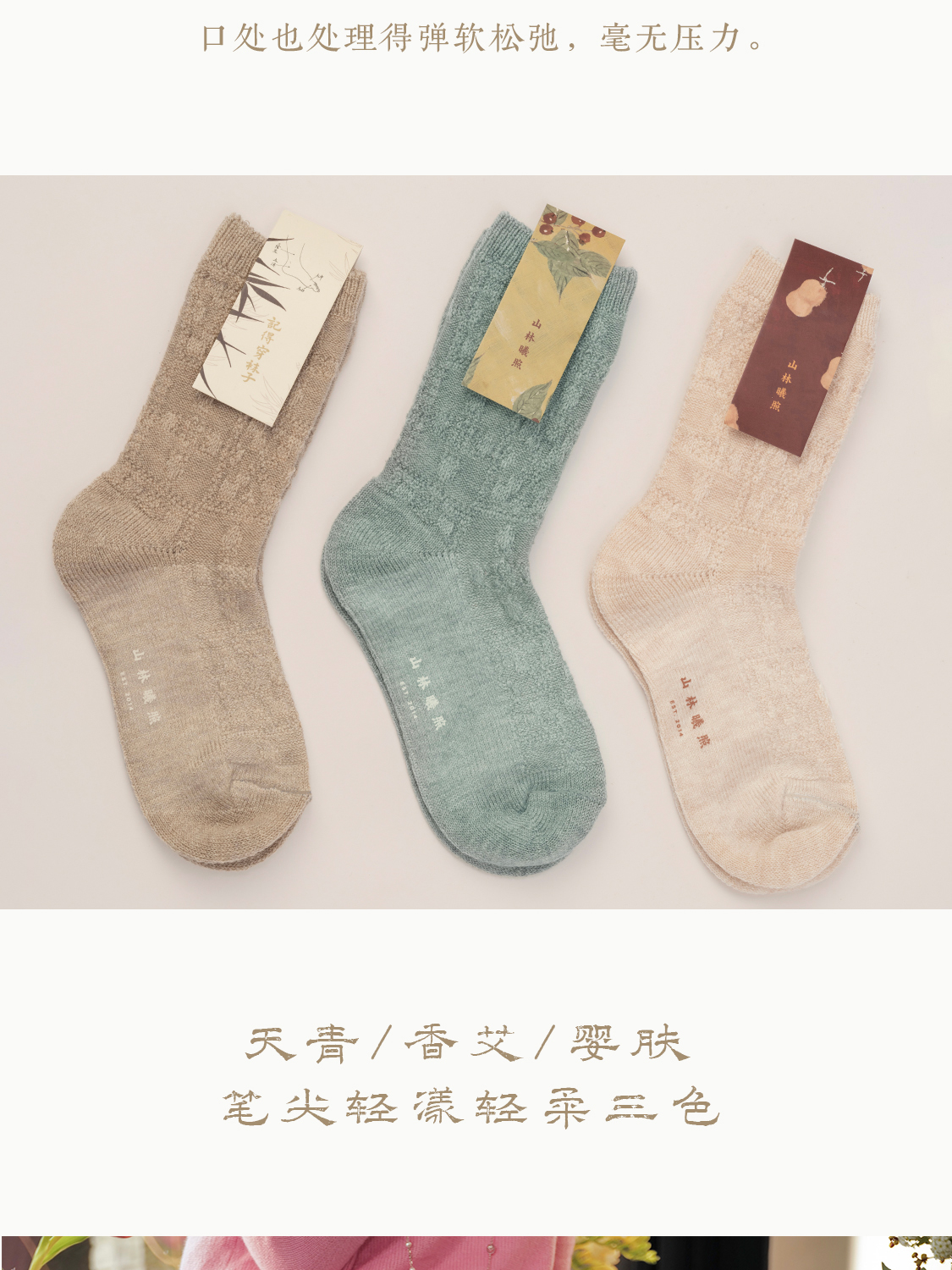 踏春 菱纹绵软松弹包脚中筒袜 四季袜 山林曦照