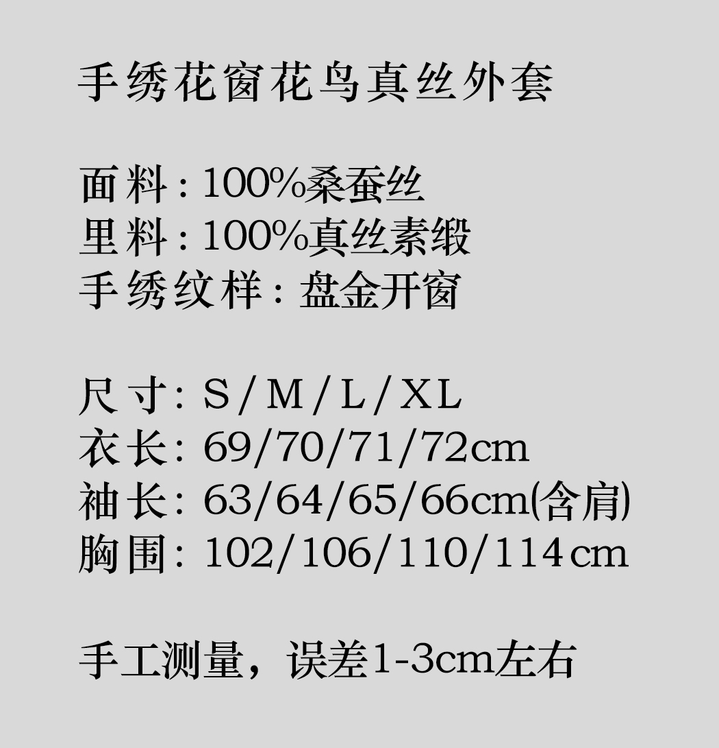 盛唐牡丹|手绣花窗花鸟真丝外套