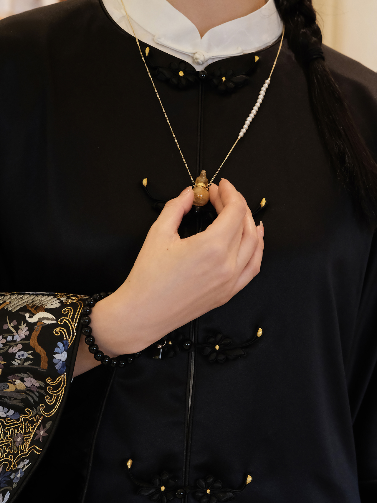 盛唐牡丹 |梅兰竹菊真丝冠乐皱斜襟旗袍裙