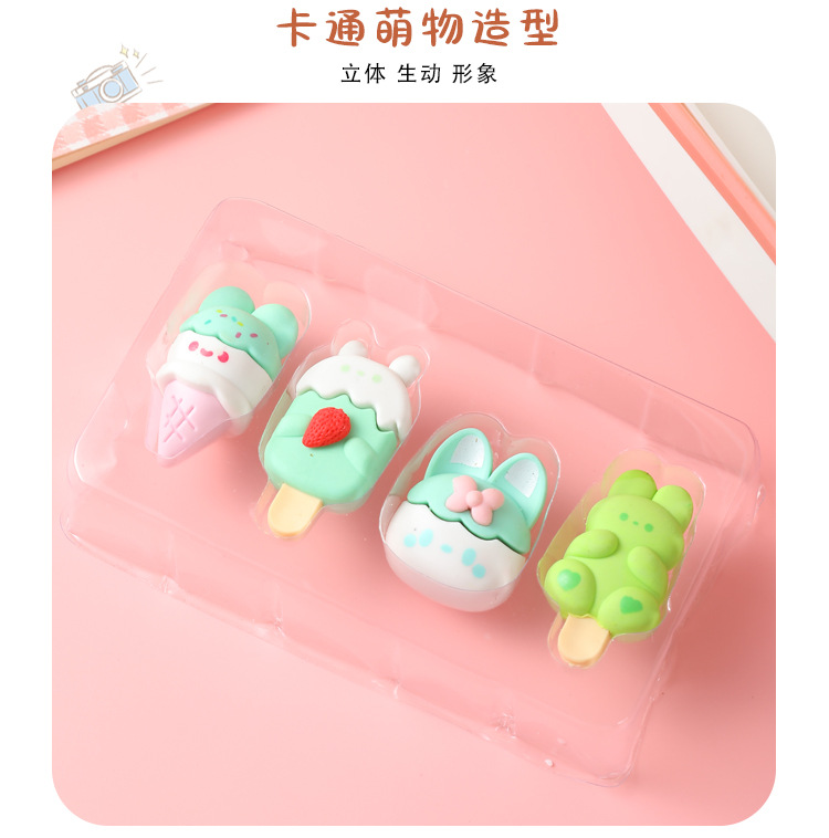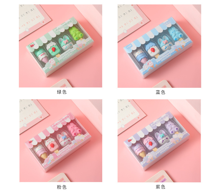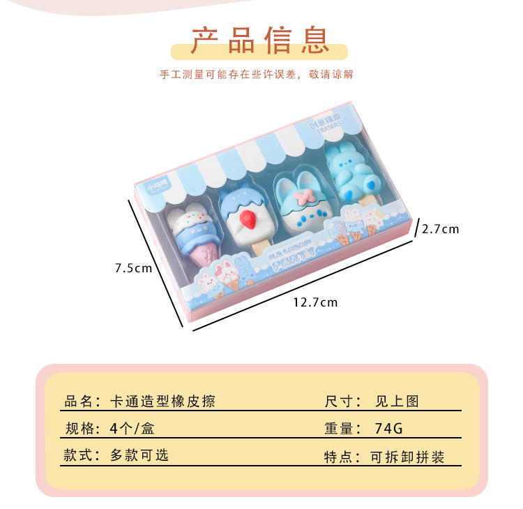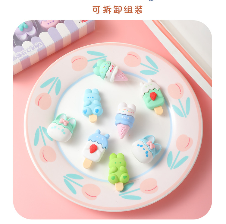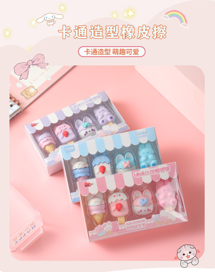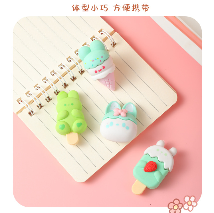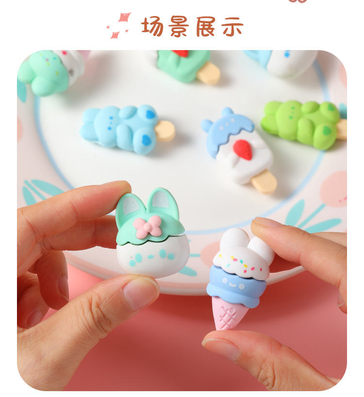 【萌趣可爱❗卡通甜点小兔橡皮擦】学生创意文具幼儿园可爱少女心雪糕甜筒干净橡皮开学季六一儿童节礼物L