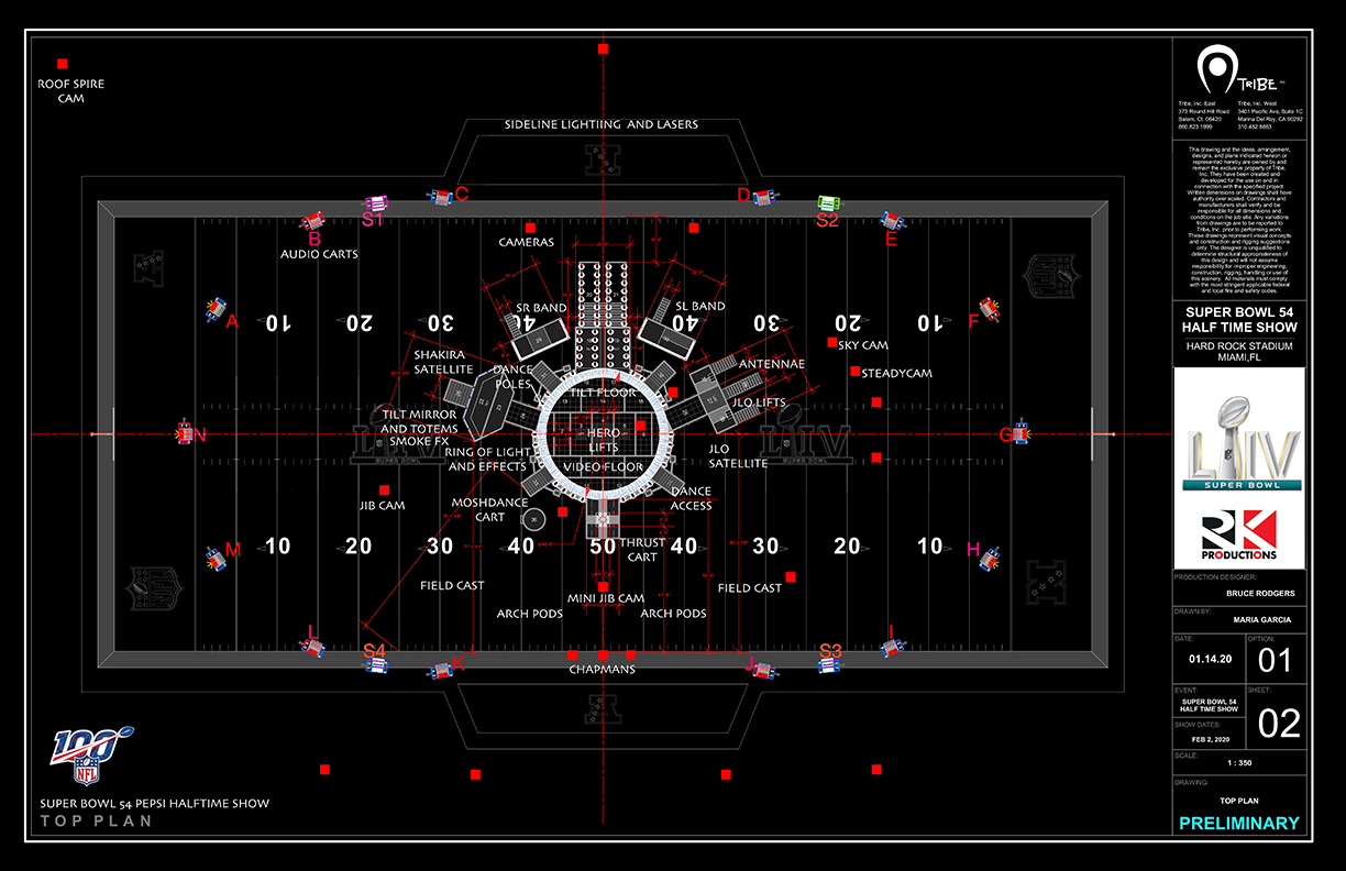 本届超级碗中场秀的舞美创意设计依然由Tribe Design负责,从Prince开始至今,Tribe为大家奉献了众多难忘的瞬间。而今年也是舞美制作公司All Access Staging&Productions working第十年服务超级碗中场秀。