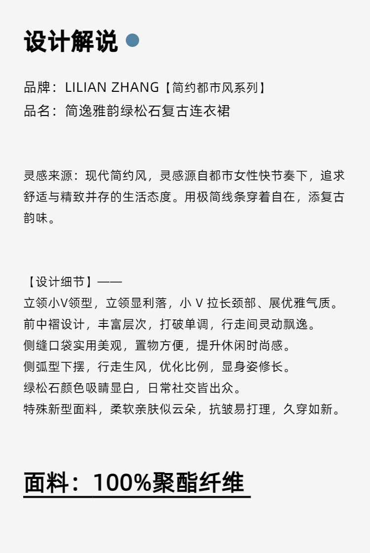 E-定制 ——“简约都市风”——简逸雅韵———绿松石复古连衣裙 2501026