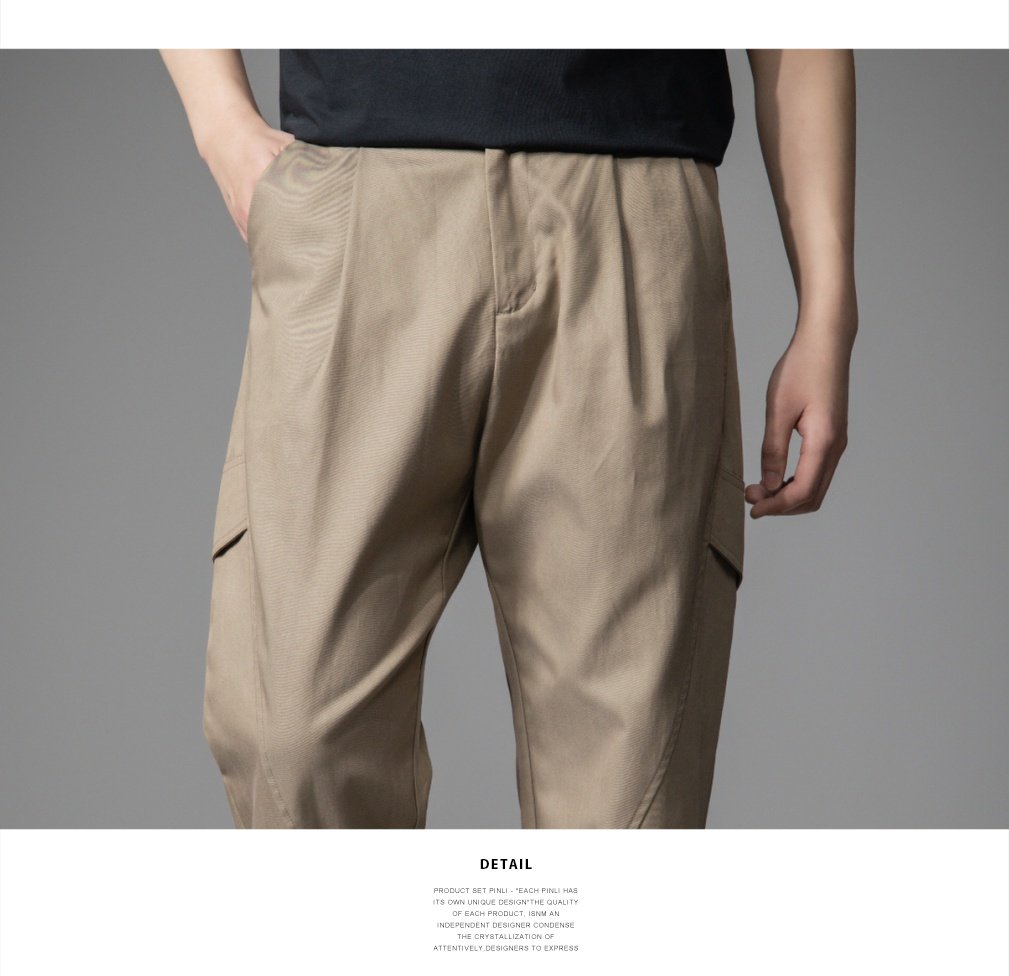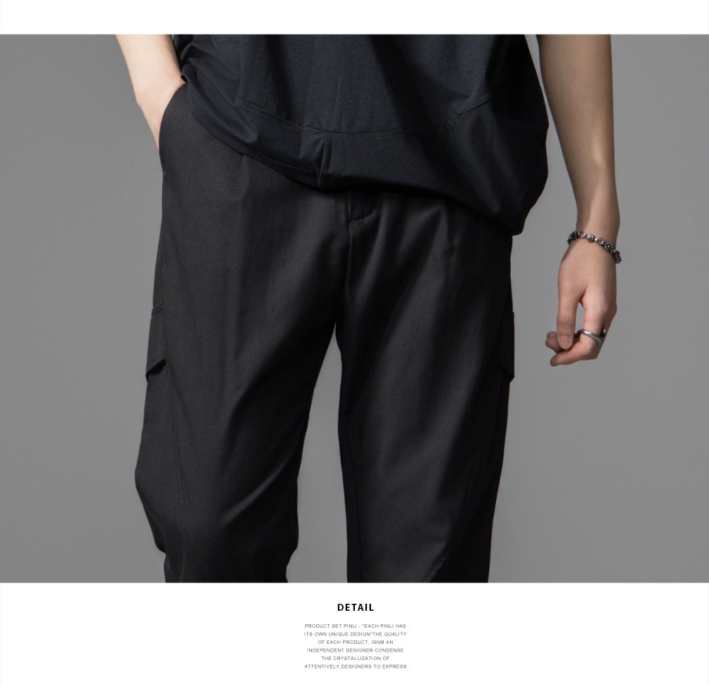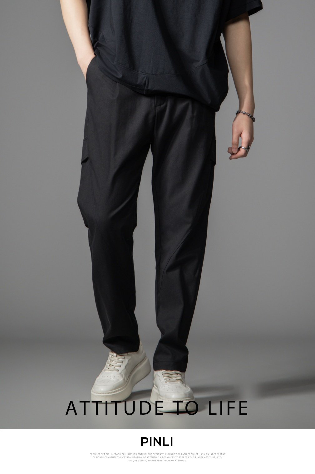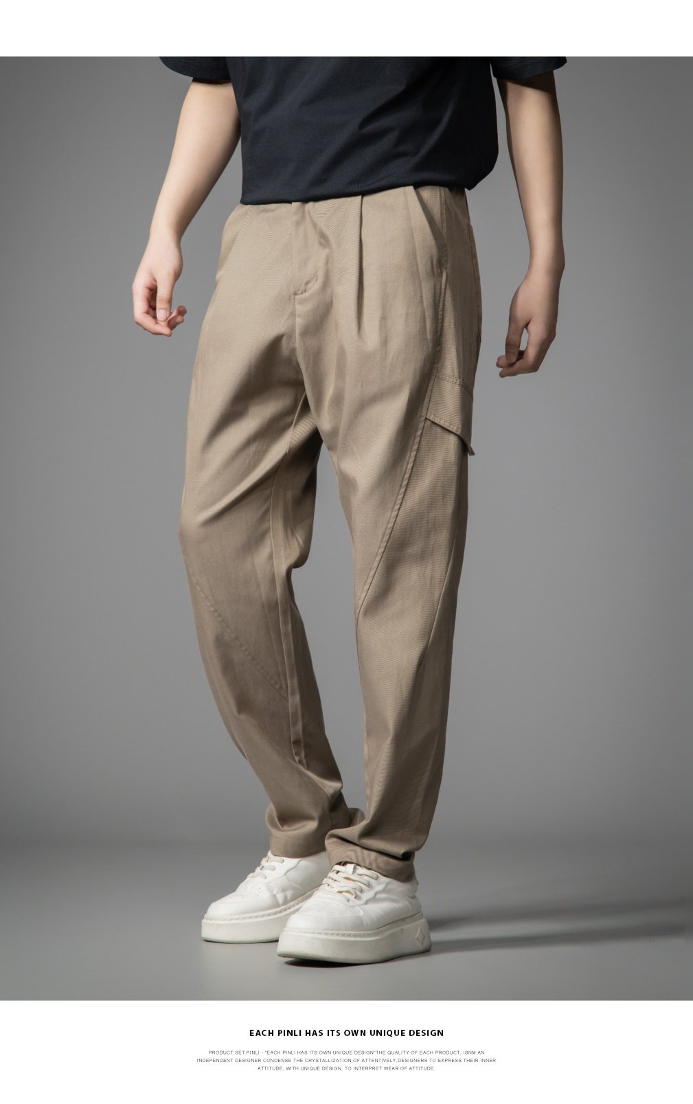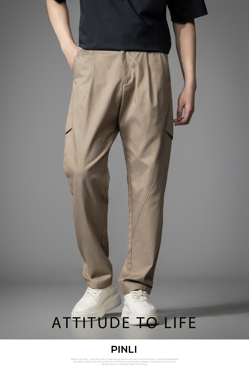 PINLI品立2025秋季新款男士褶皱设计感休闲长裤潮牌直筒伞兵裤子GD253117074