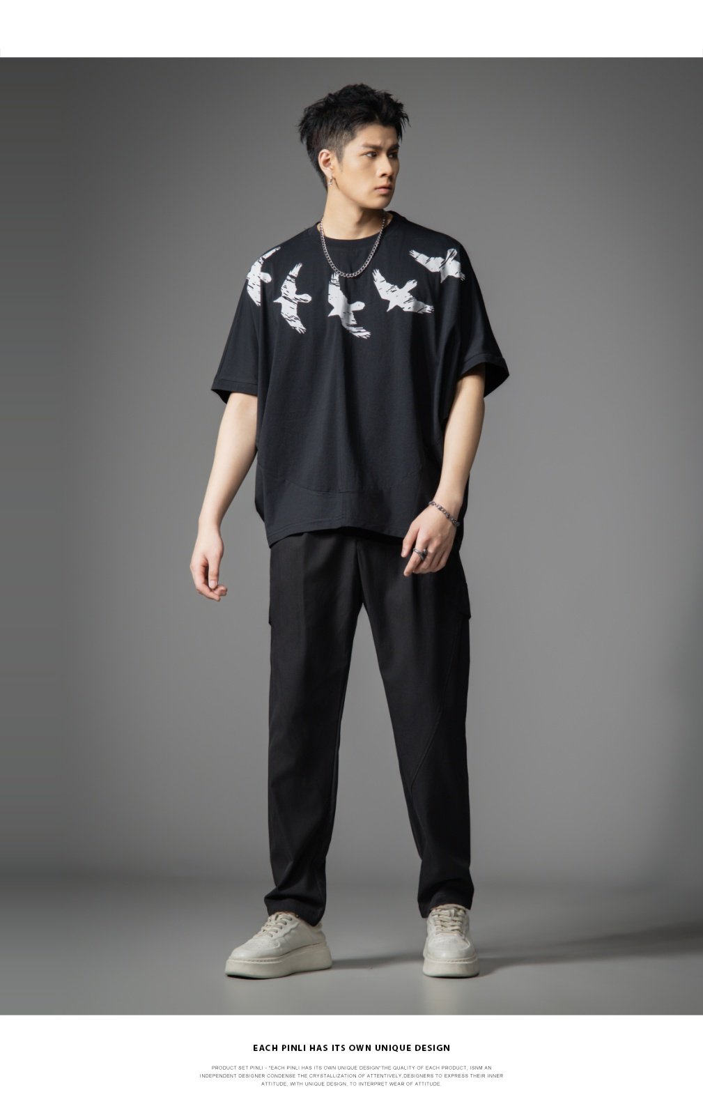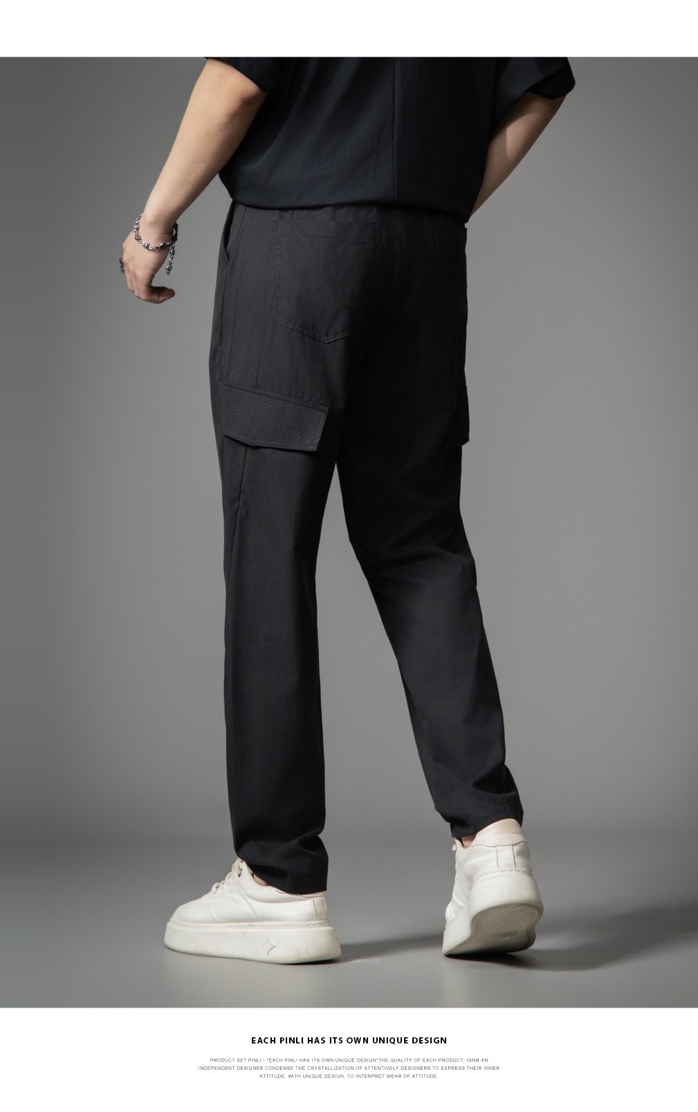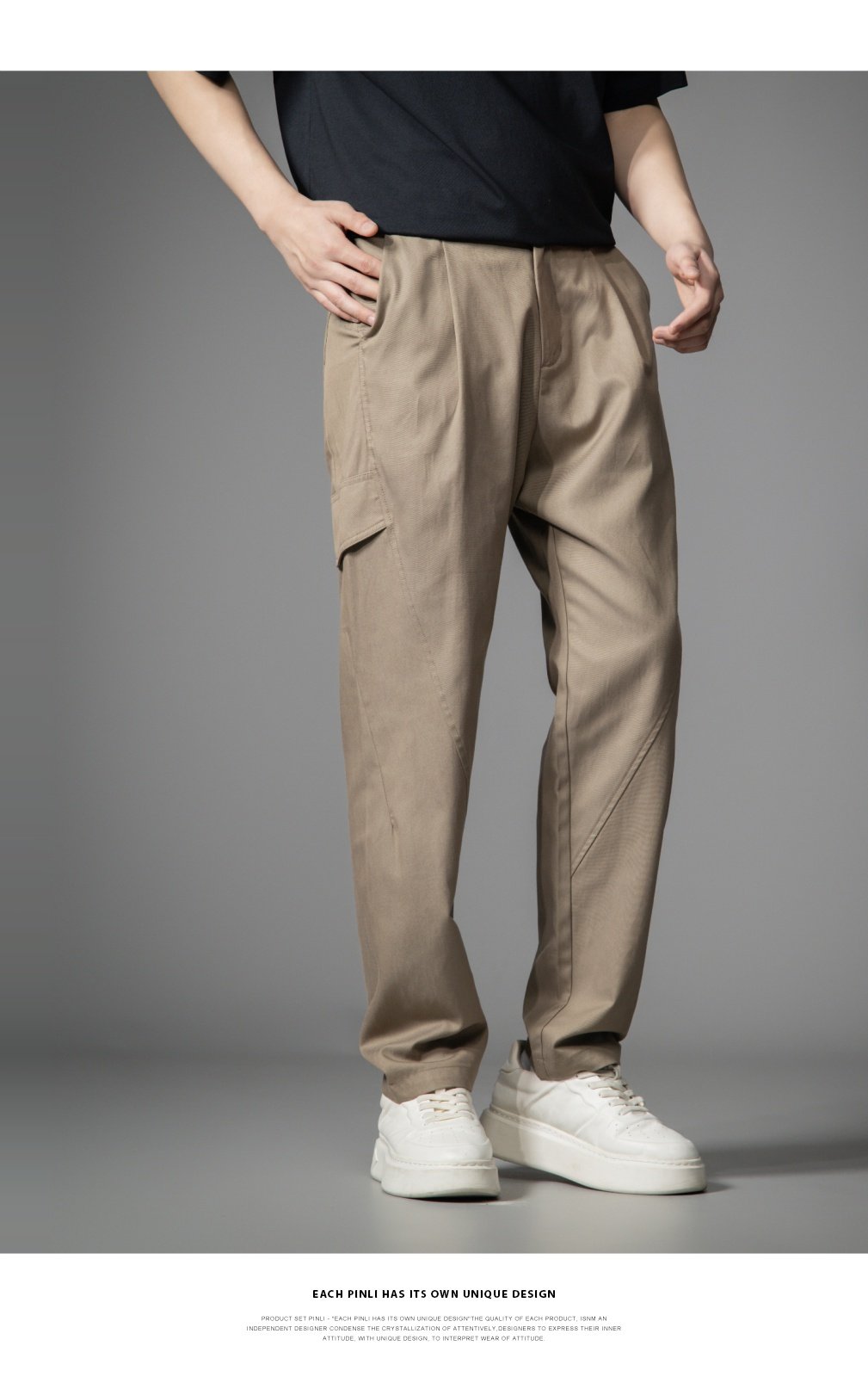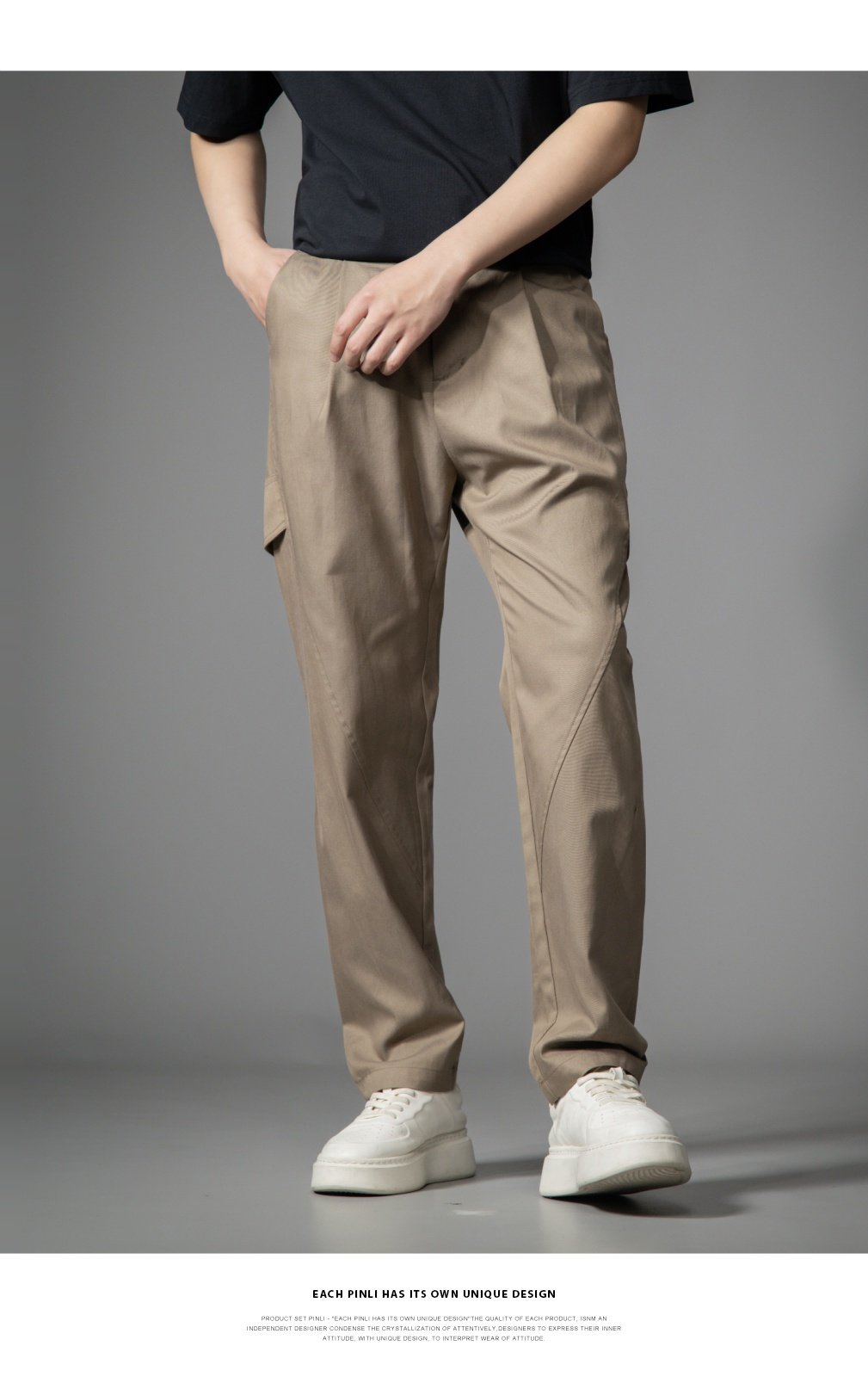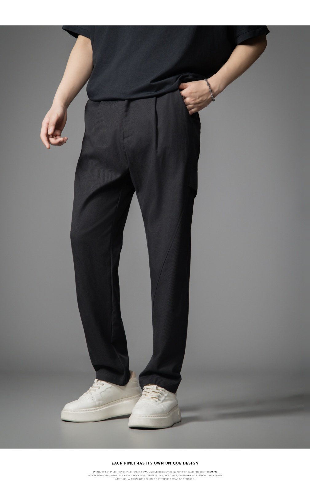 PINLI品立2025秋季新款男士褶皱设计感休闲长裤潮牌直筒伞兵裤子GD253117074