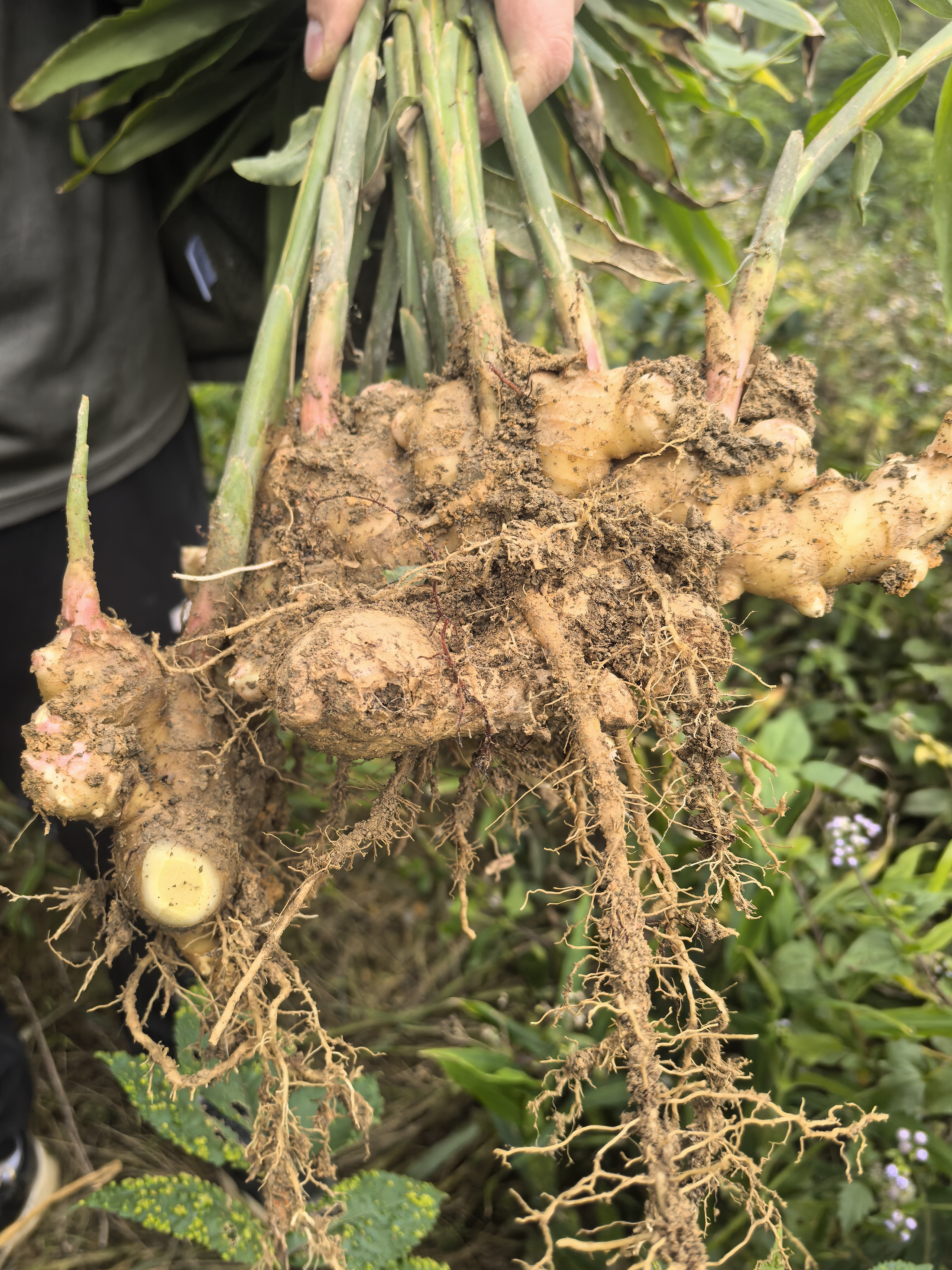 的了天然生长的“暖身宝”, 初次见面,真的有点懵,真心找不到,更不要说打农药、施化肥了。每块鲜姜都带着山林的清新与纯净,还有一些蒙蒙的。
