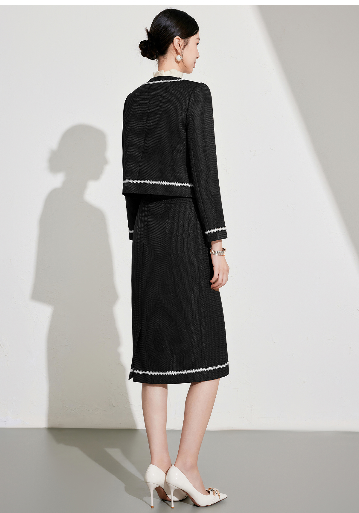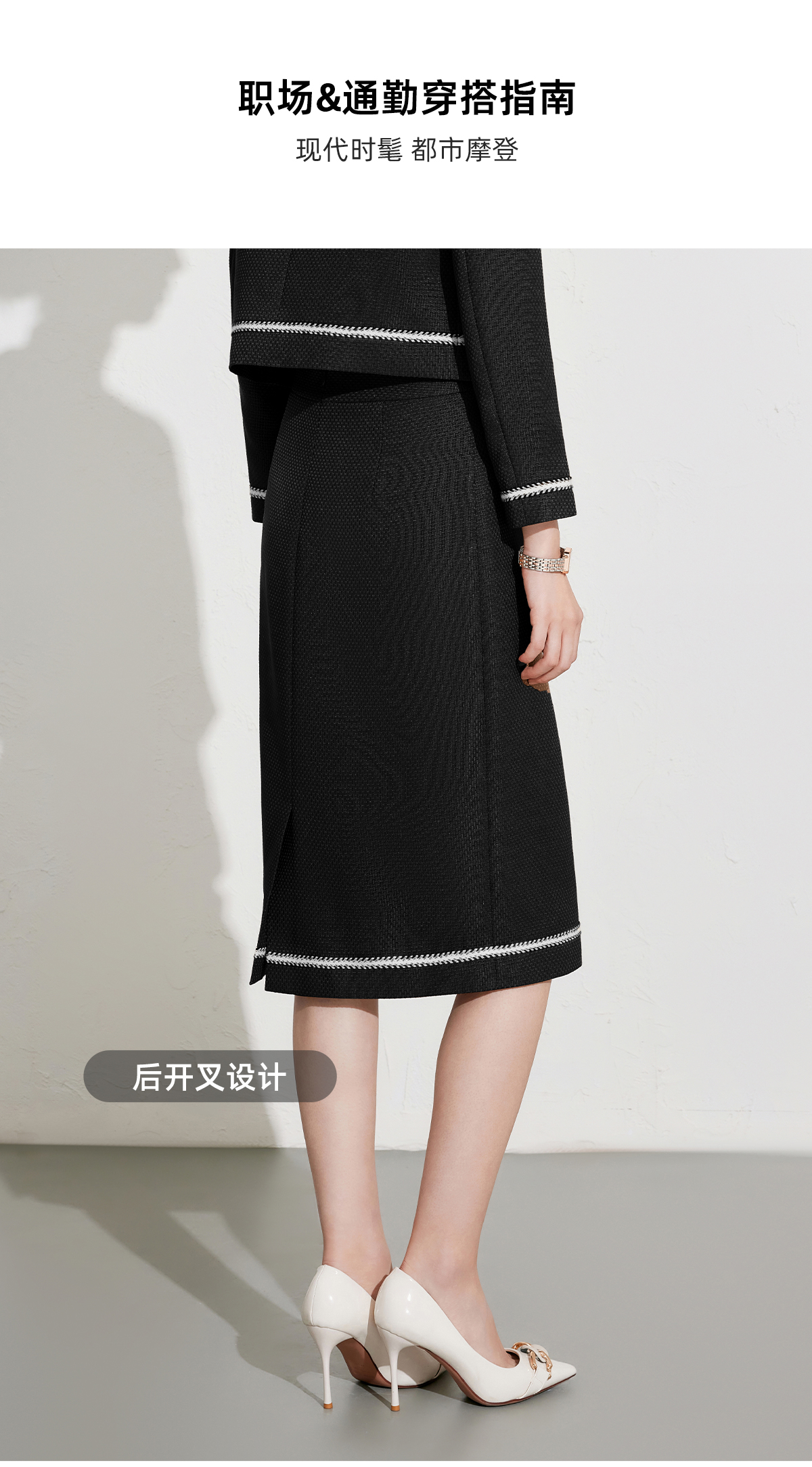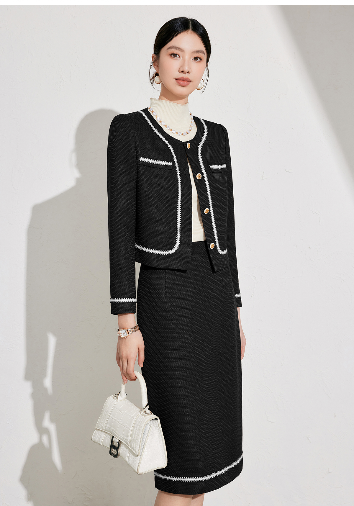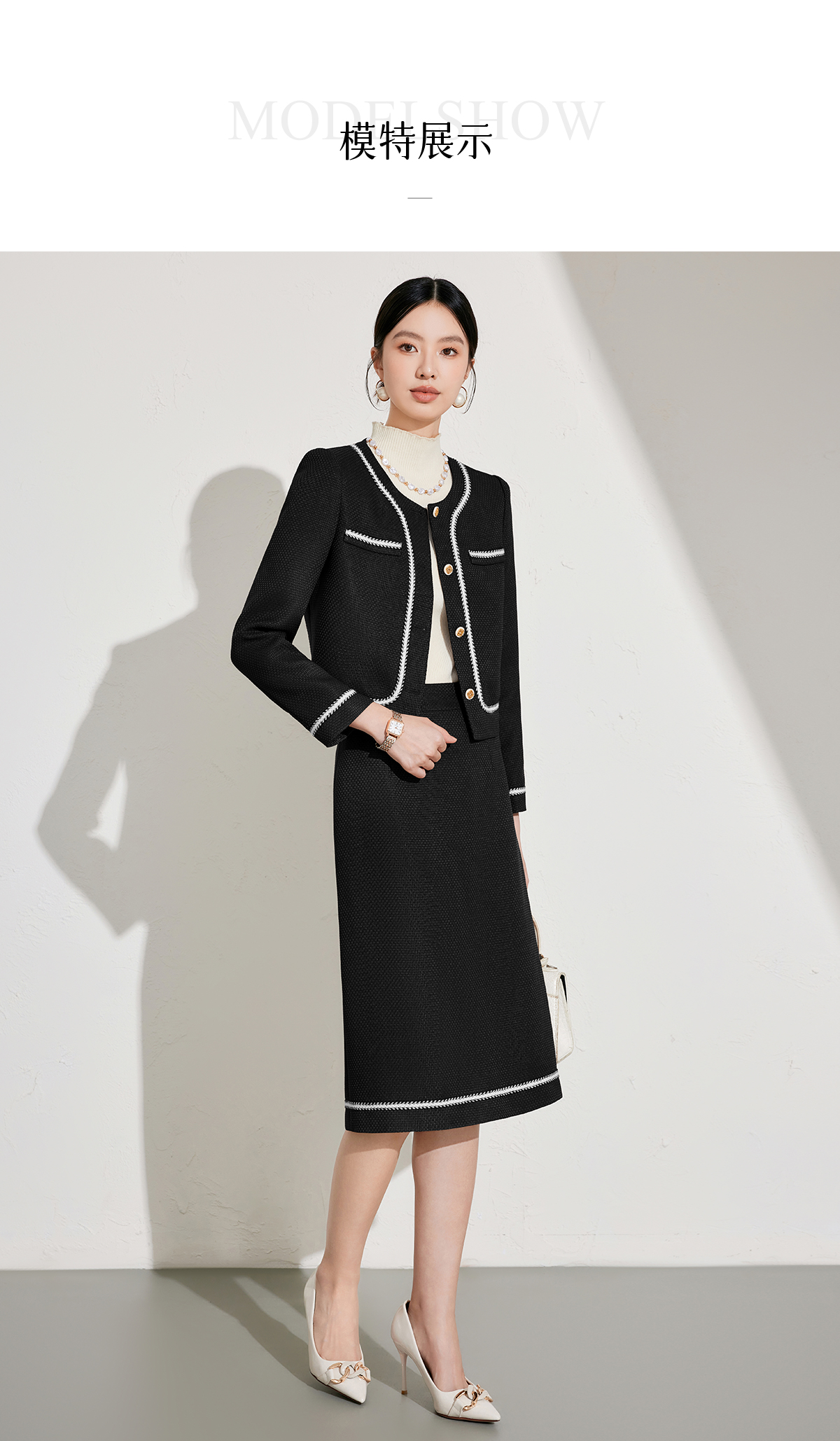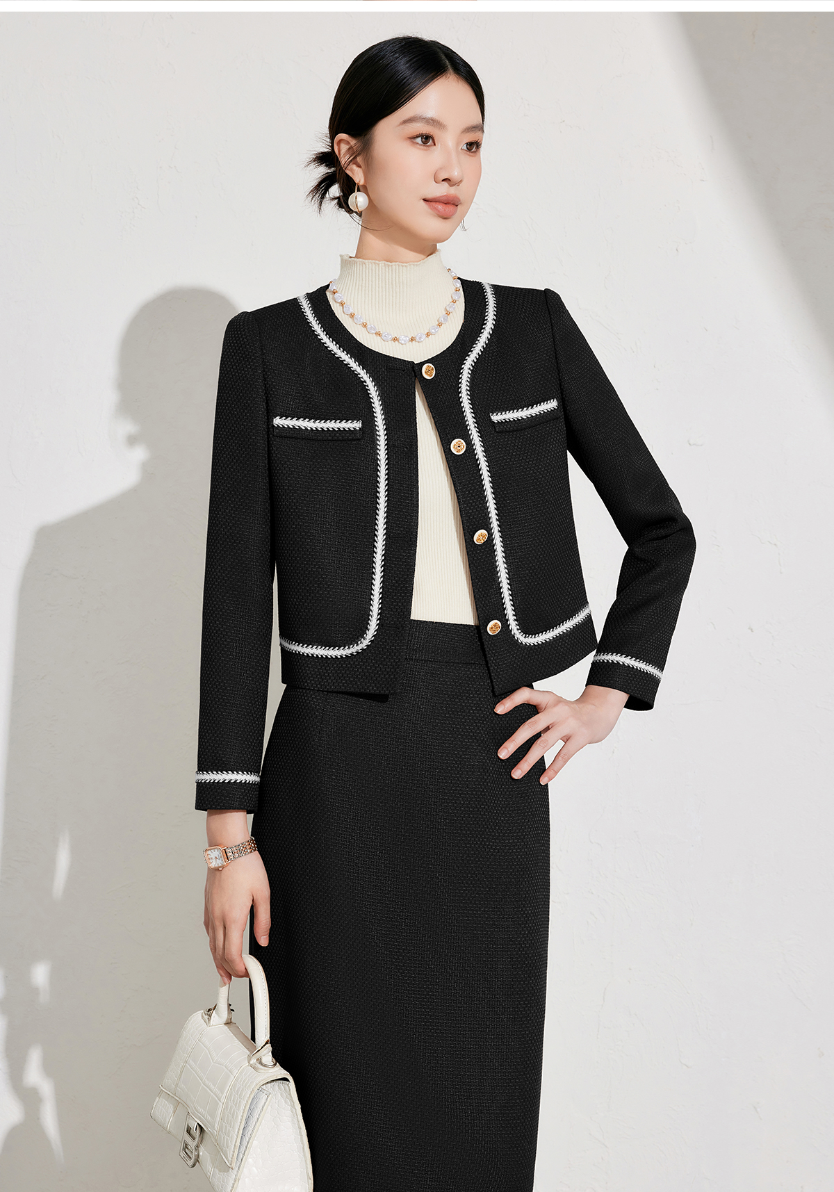 艾尚臣秋冬新款黑色小香风外套高级感职业半裙套装短上衣两件套女