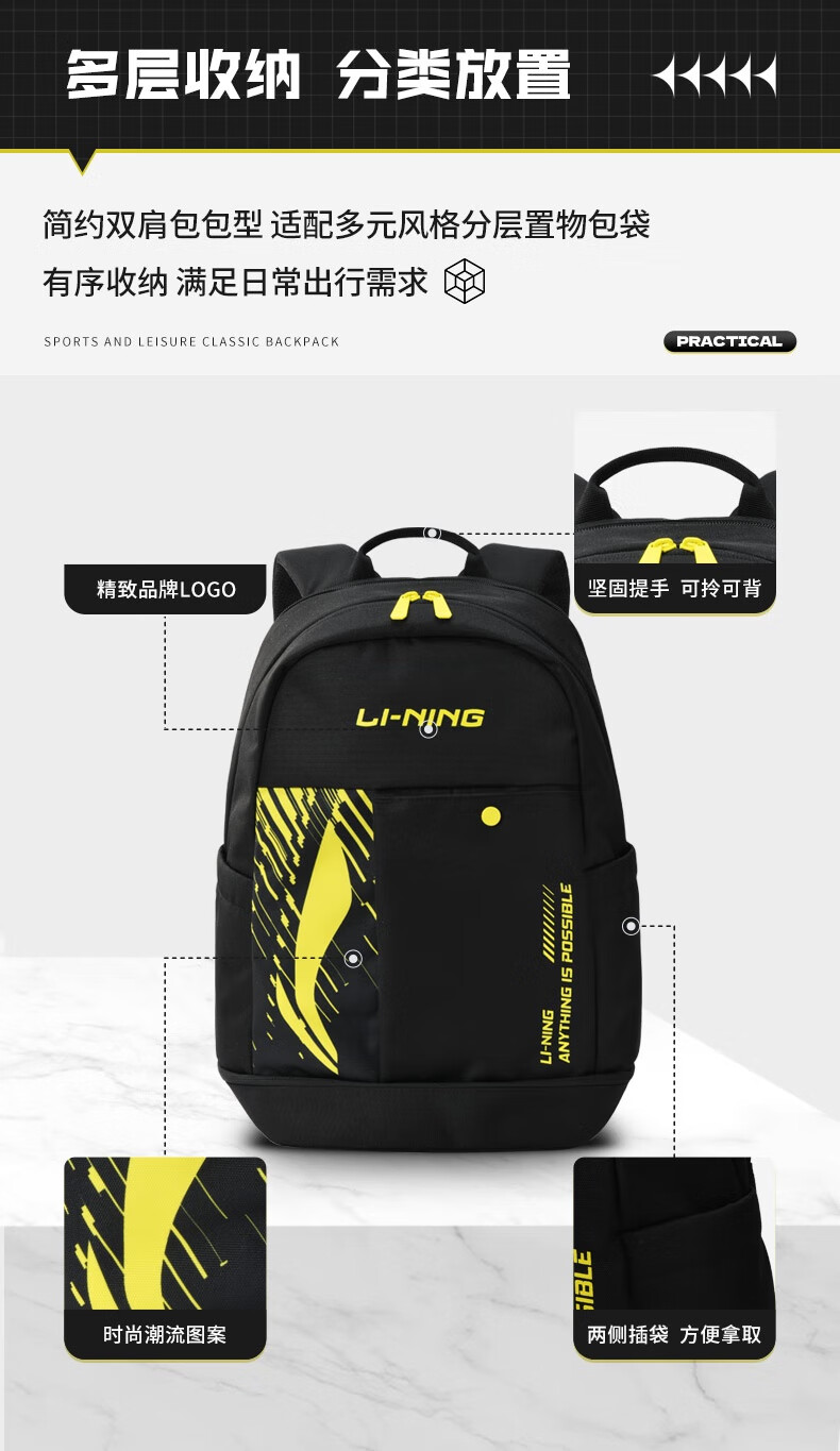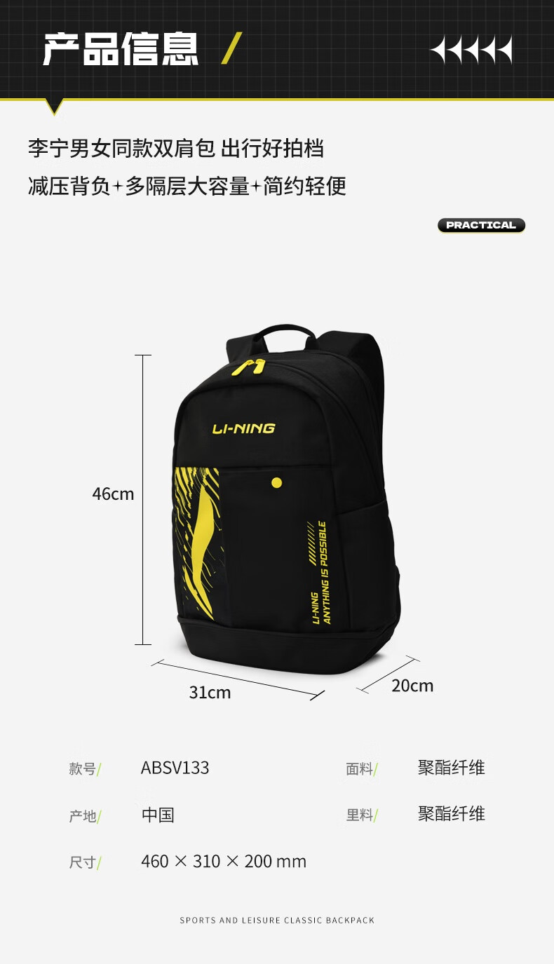李宁 羽毛球包 双肩包 ABSV133