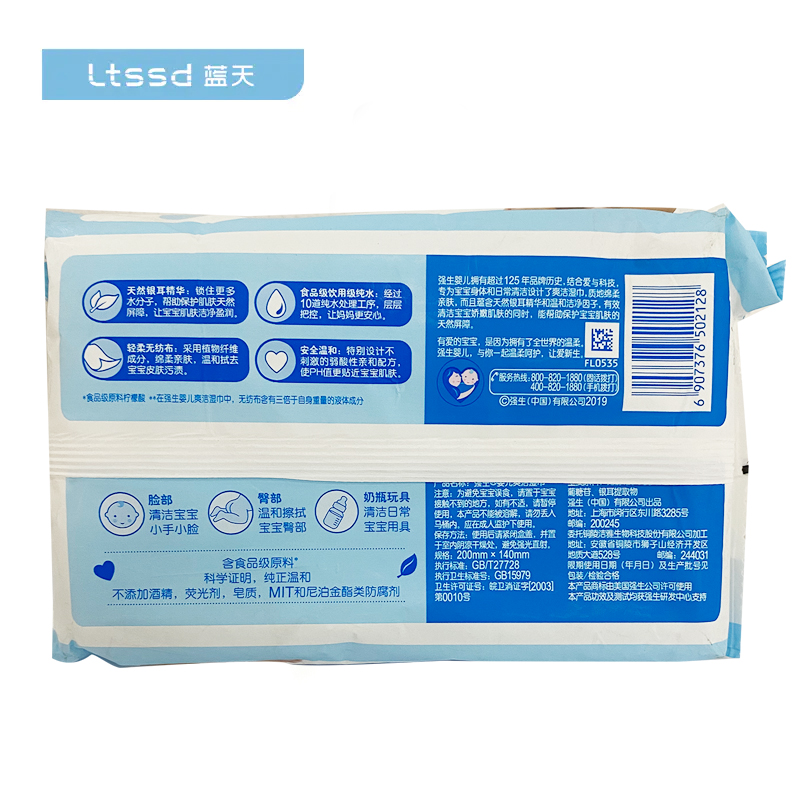 强生婴儿爽洁湿巾银耳柔护80片(20060909)【20060909】