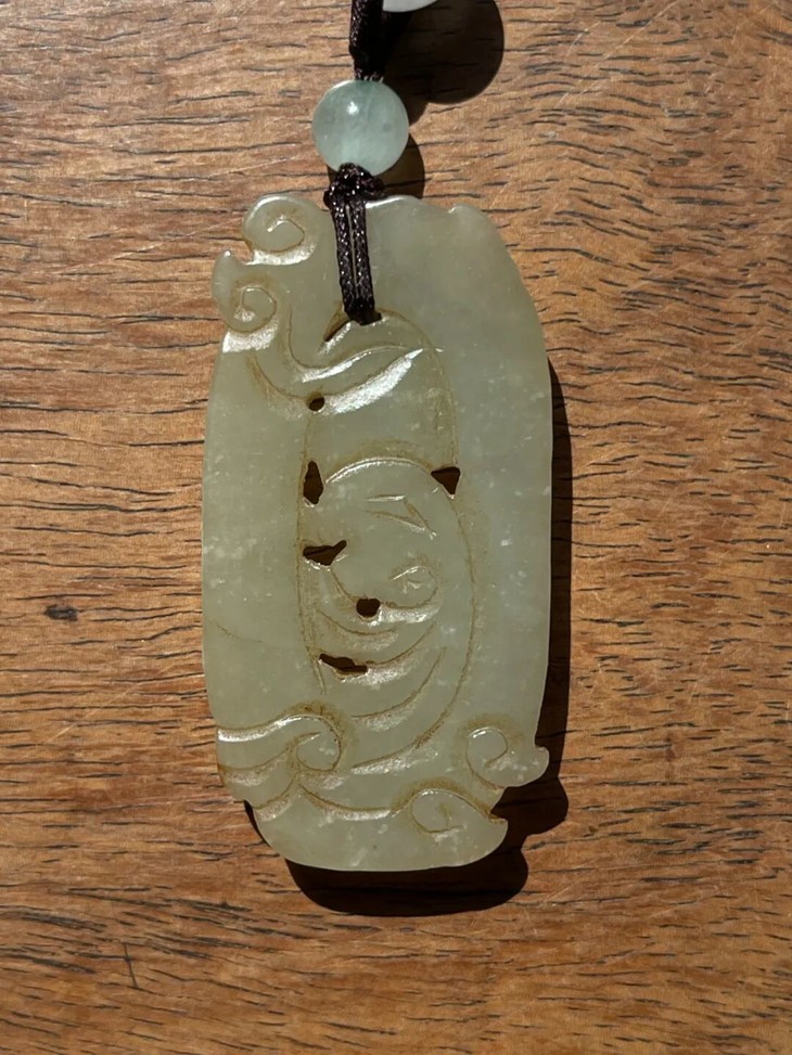 此和田白玉镂雕云龙纹椭圆珮吊坠牌,造形生动流畅,玉质通透细腻温润,镂空透雕简约大气,搭配绳结項链,入手即可佩戴,或是可以镶贵金属融入当代珠宝首饰设计,穿云龙构图独具一格,雕琢精美,简约典雅,搭配时尚服饰气质非凡、不落俗套。此和田白玉镂雕云龙纹椭圆珮,玉质与皮壳细腻温润,如图所示,除局部细微磨损痕以及沟槽积垢外,保存完好无损。