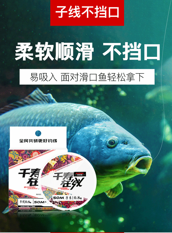 快乐垂钓千寿荧光钓线50M主线正品日本进口超柔软强拉力尼龙线子线