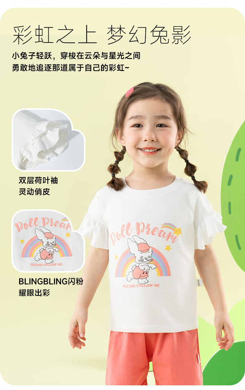 贝贝怡女童夏季短袖T恤ZB2ES019