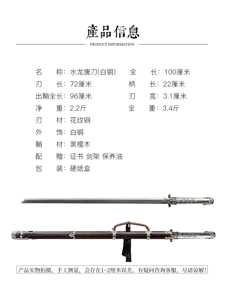 水龙唐横刀剑汉唐宝剑龙泉沈广隆宝剑一体刀剑防身冷兵器 未开刃
