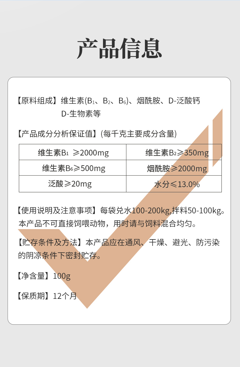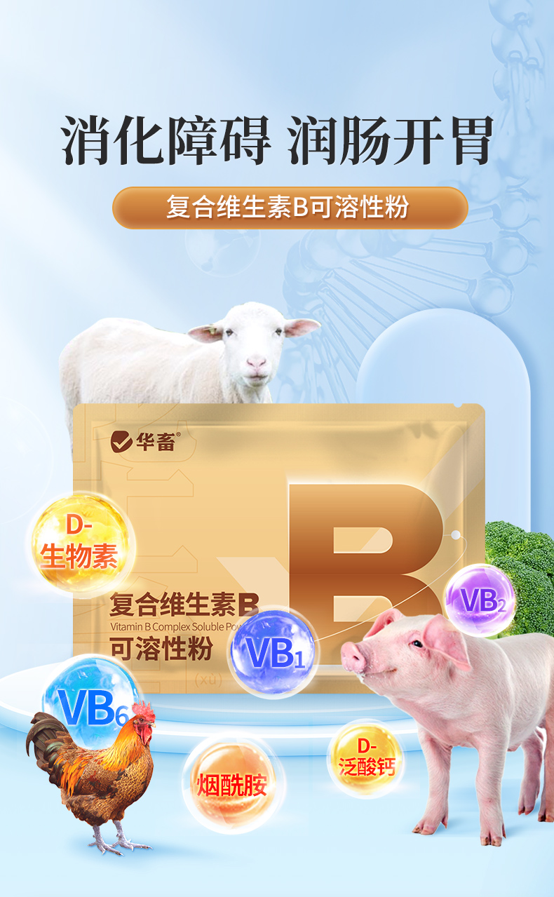 华畜复合维生素B可溶性粉100g 促消化积食 赖皮症口腔炎