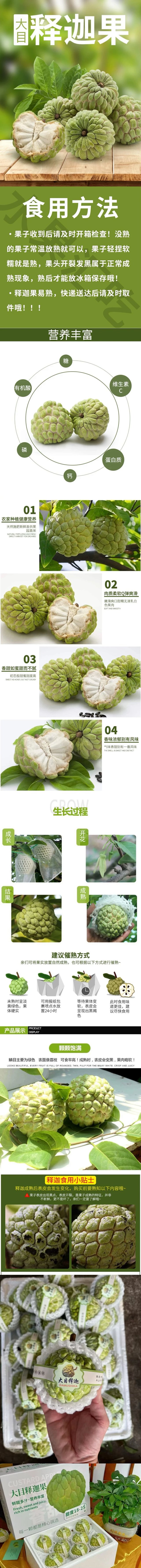 保存方法:收到后请开箱查看释迦的软硬度,若是硬的请常温放1-2天后观察软硬度,果实开始变软请即时食用。
