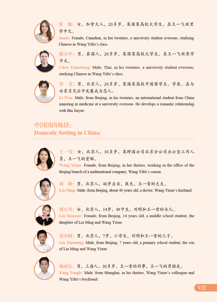 1. 三等九级,全面覆盖:与《国际中文教育中文水平等级标准》和HSK3.0体系相呼应,全面覆盖三等九级,为学习者提供更清晰、更精准的进阶路径。Three Levels and Nine Bands, Full Standards Alignment: Corresponding to Chinese Proficiency Grading Standards for International Chinese Language Education and the HSK 3.0 syllabus, the series comprehensively covers all three levels and nine bands, providing learners with a clearer and more precise progression path.2. 考学互促,双轮驱动:紧密对标新标准、新考纲,融合中文学习与备考需要,实现;以考促教、以考促学、以考促用。Integrated Learning and Testing, a Dual_Driven Approach: Closely aligned with the latest standards and syllabus, the series integrates Chinese learning with exam preparation, achieving the goal of promoting teaching, learning, and application through testing.3. 情景沉浸,科学实用:科学编排语言知识点,融入真实情境对话和;轻情景剧叙事方式,兼顾中文特点与学习者认知规律,提升实际交际能力。Immersive Learning and Practical Application: By incorporating authentic situational dialogues and engaging short dramas, the series systematically organizes language points in a scientifically structured way, balancing the features of Chinese with learnersrsquo; cognitive patterns to enhance real_life communication skills.4. 立体资源,数字赋能:配套丰富数字化资源(音频、视频、课件等),轻量化设计结合线上虚拟助教,打造多模态学习体验。Comprehensive Resources and Digital Empowerment: Featuring abundant digital materials__audio, video, and interactive courseware__the series combines lightweight design with virtual teaching support to offer a rich, multimodal learning experience.