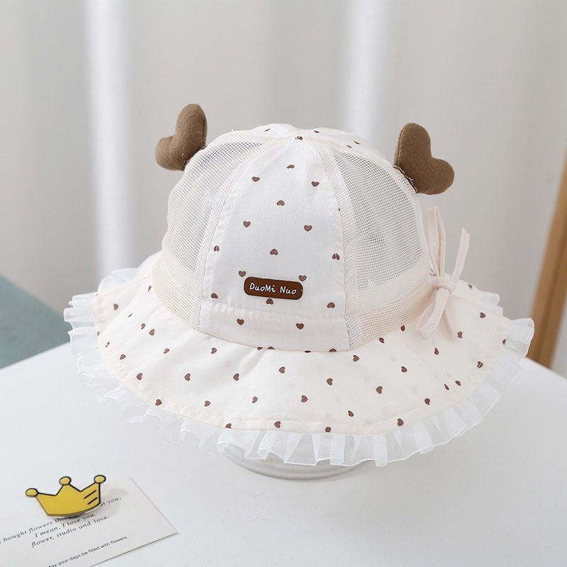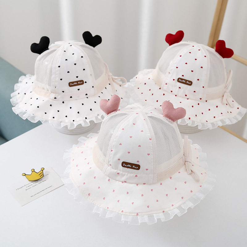 婴儿帽子夏季透气网眼小月龄遮阳太阳帽甜美防晒盆帽女宝宝渔夫帽