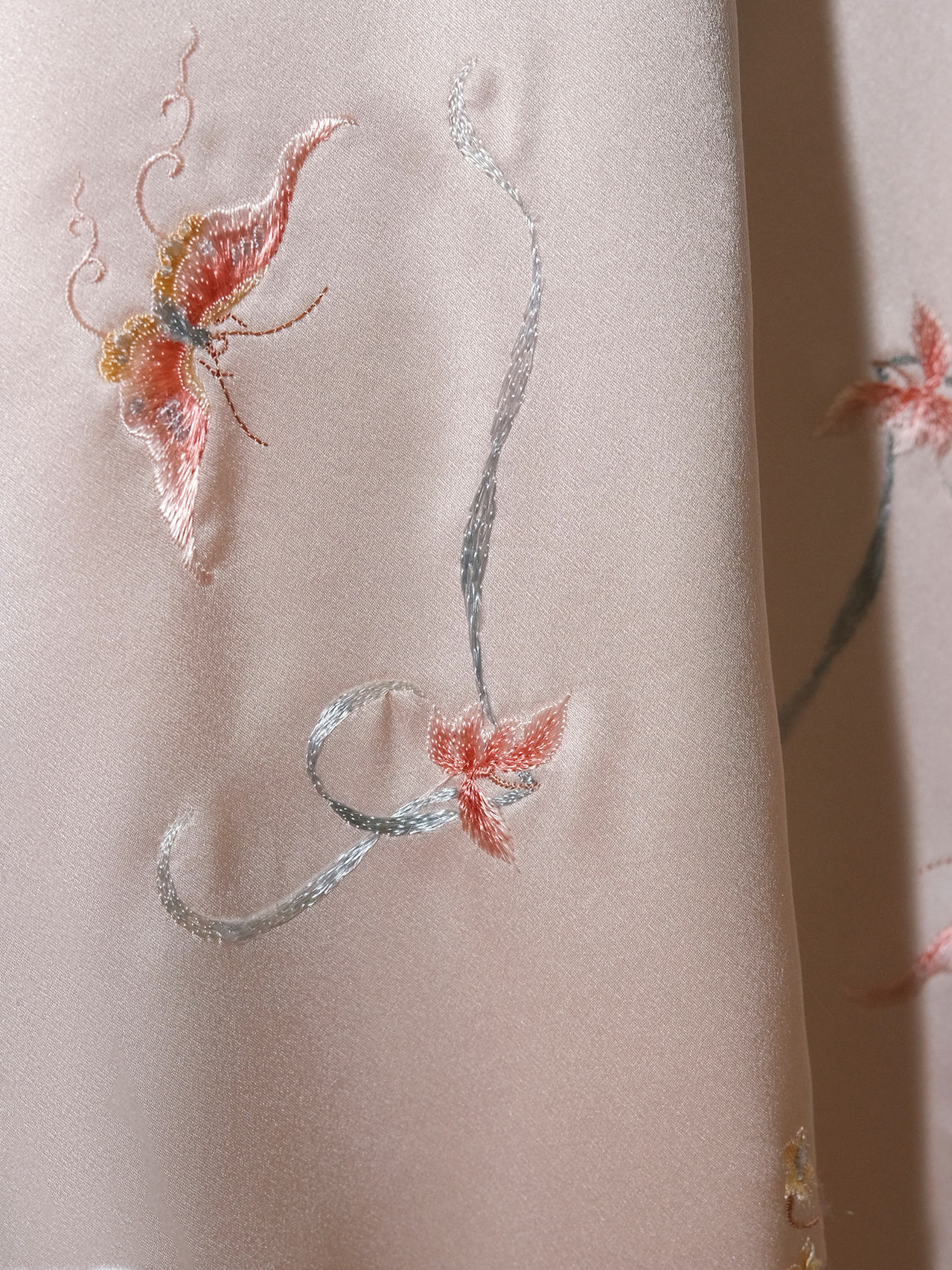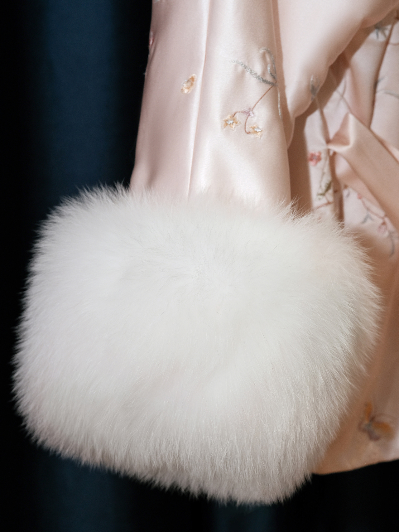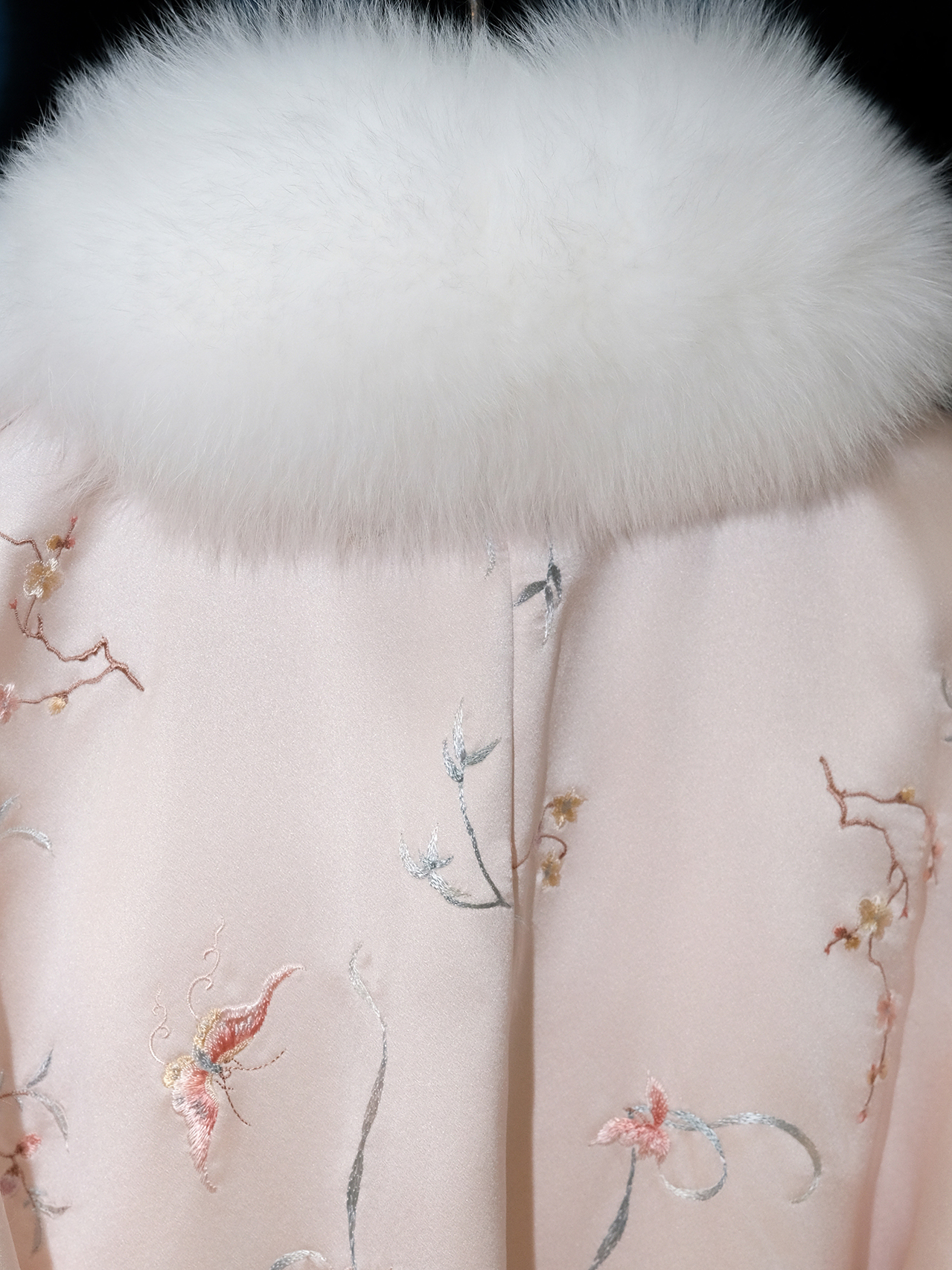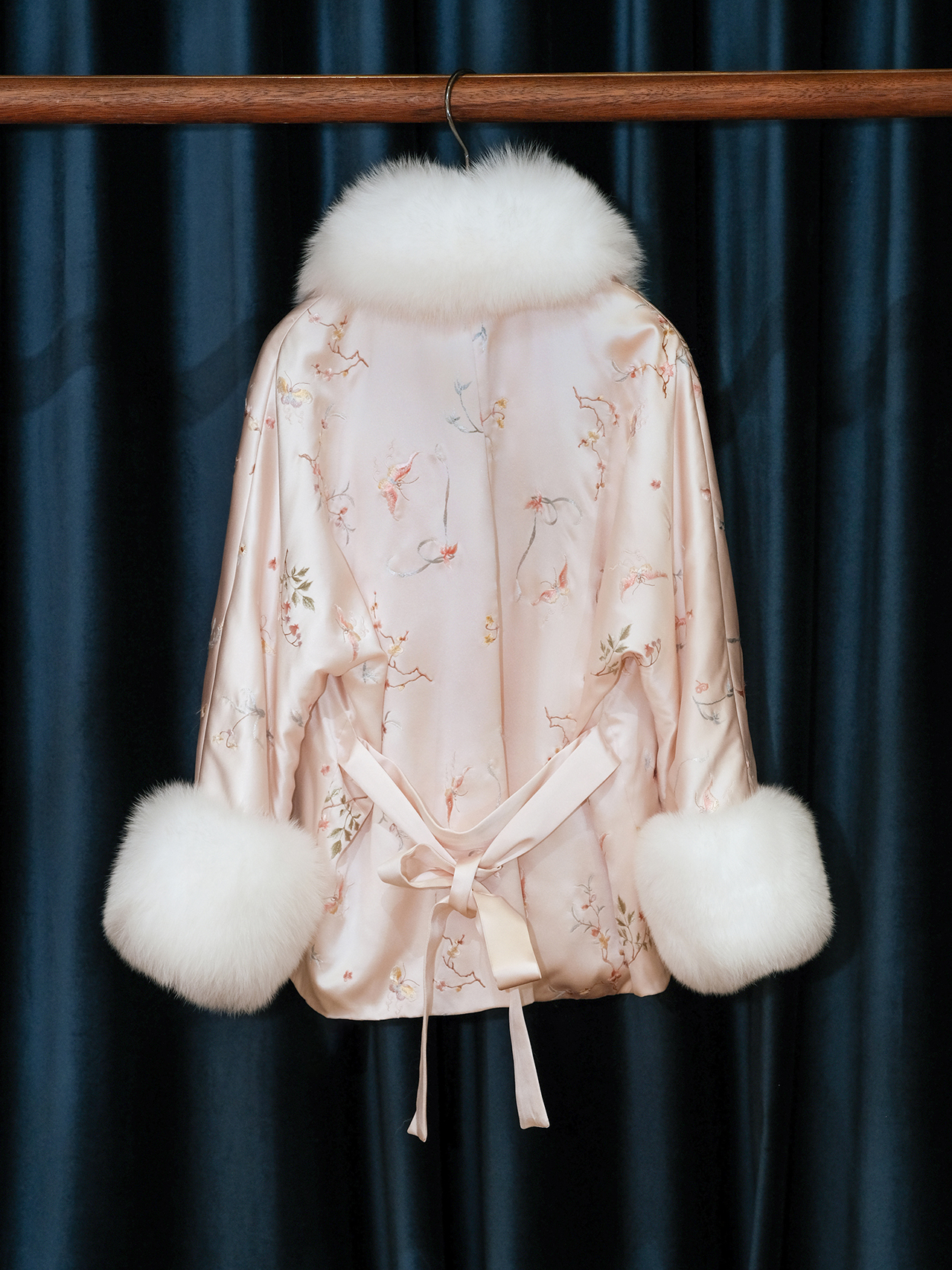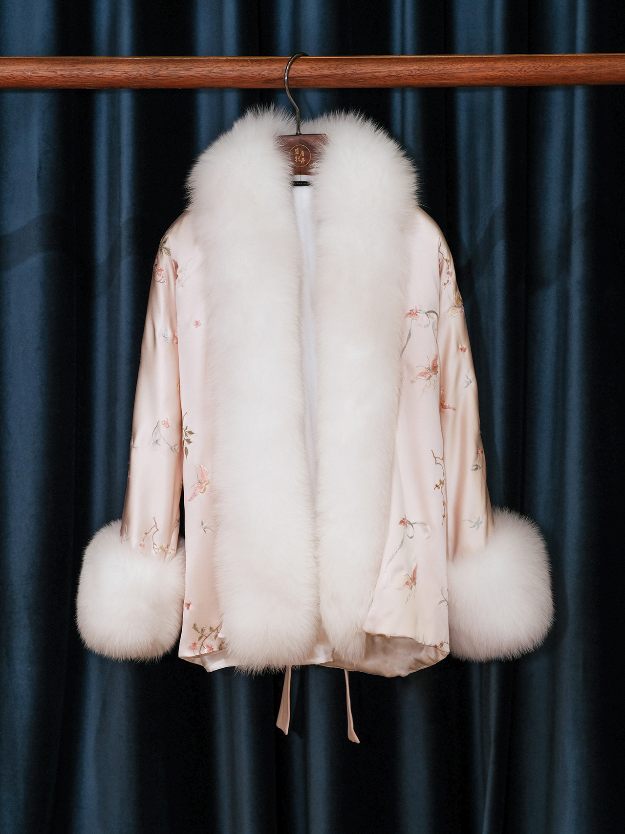盛唐牡丹盛奢系列 | 粉凤仙手推绣真丝皮草棉外套