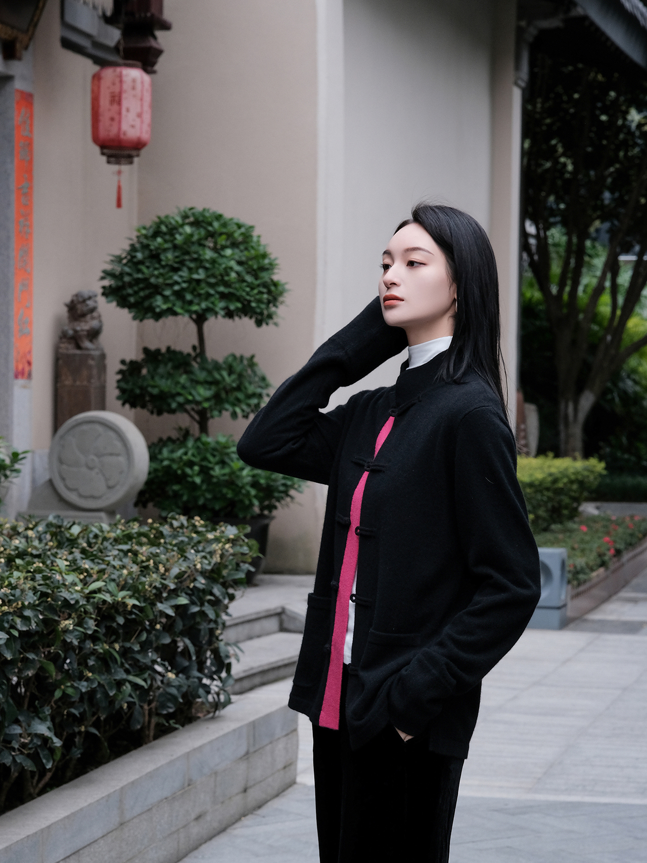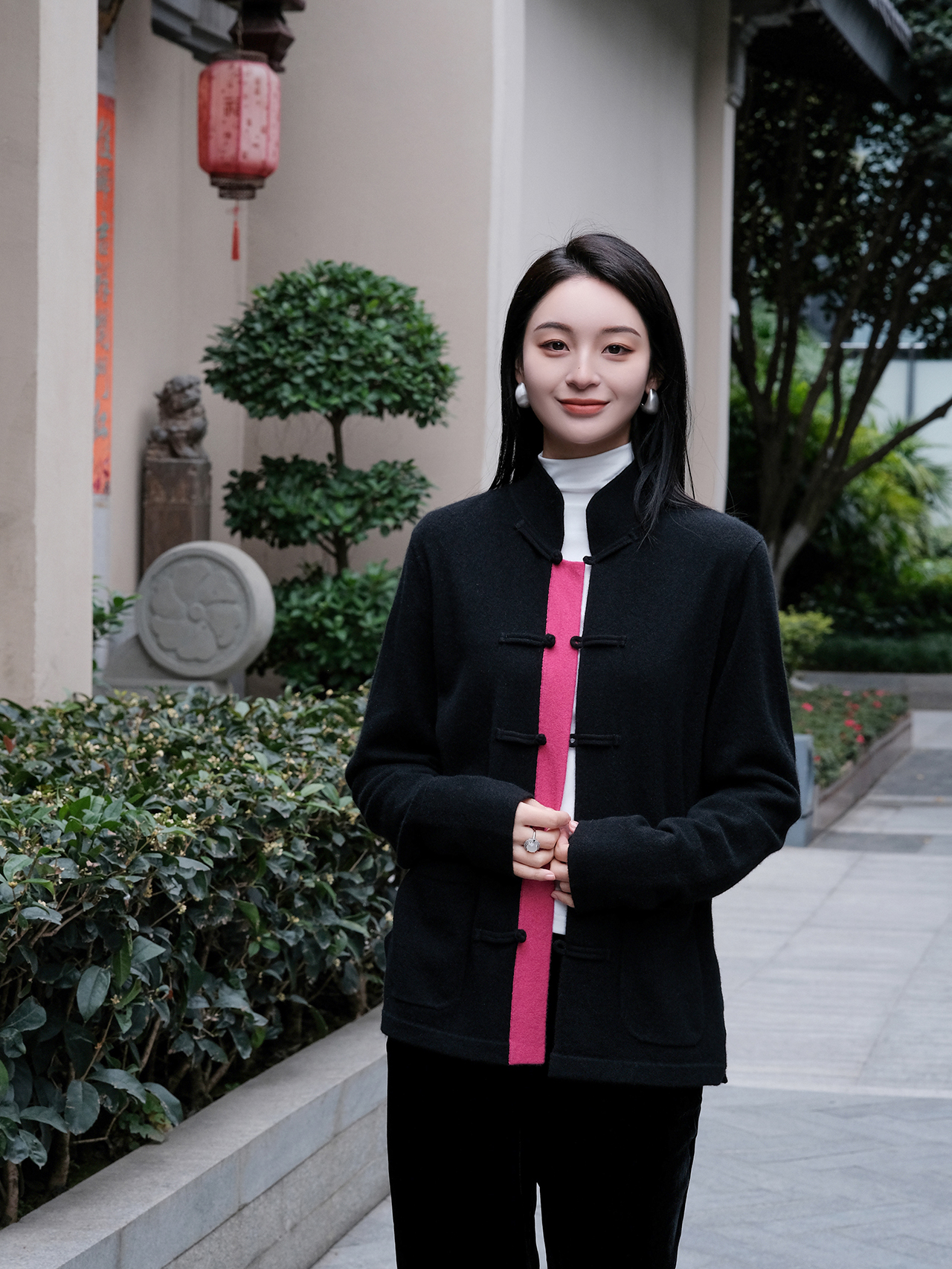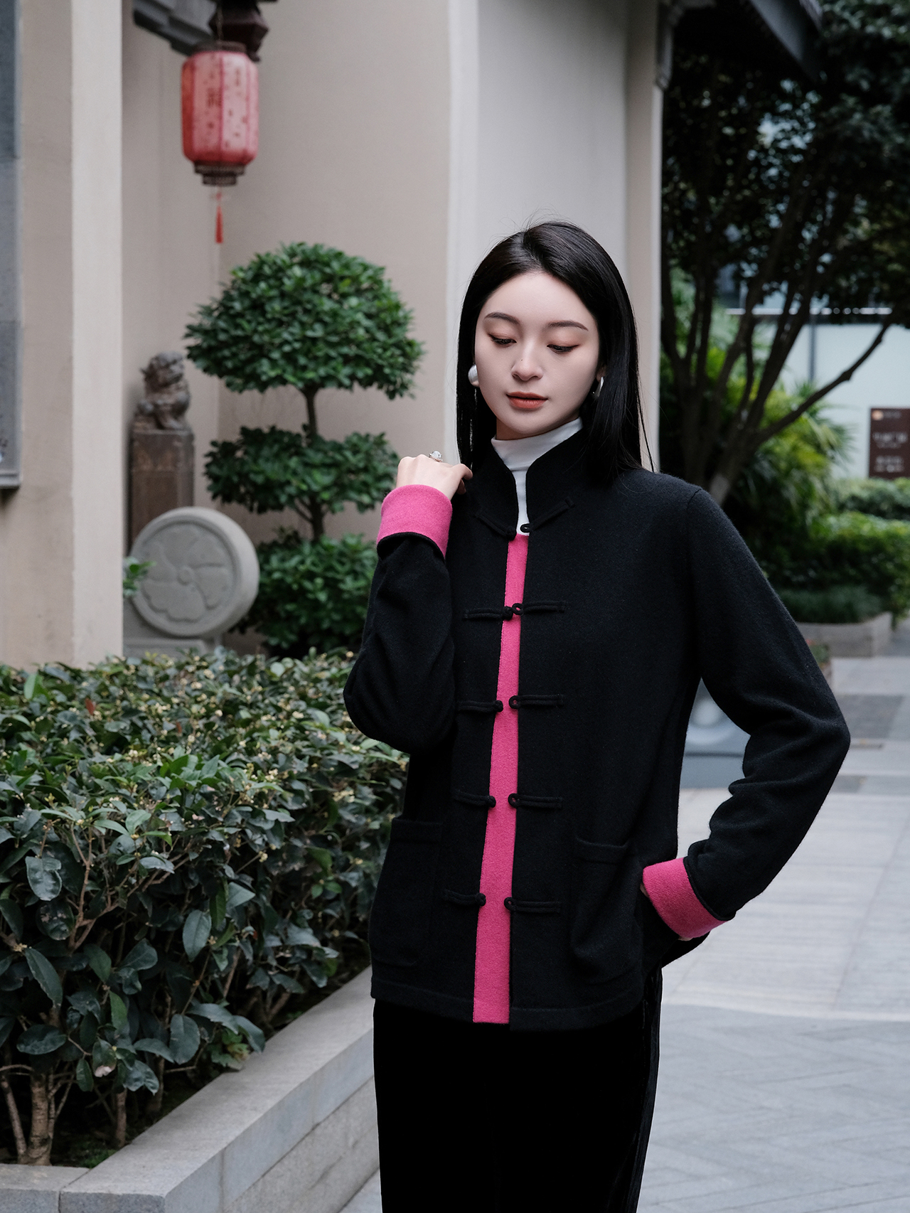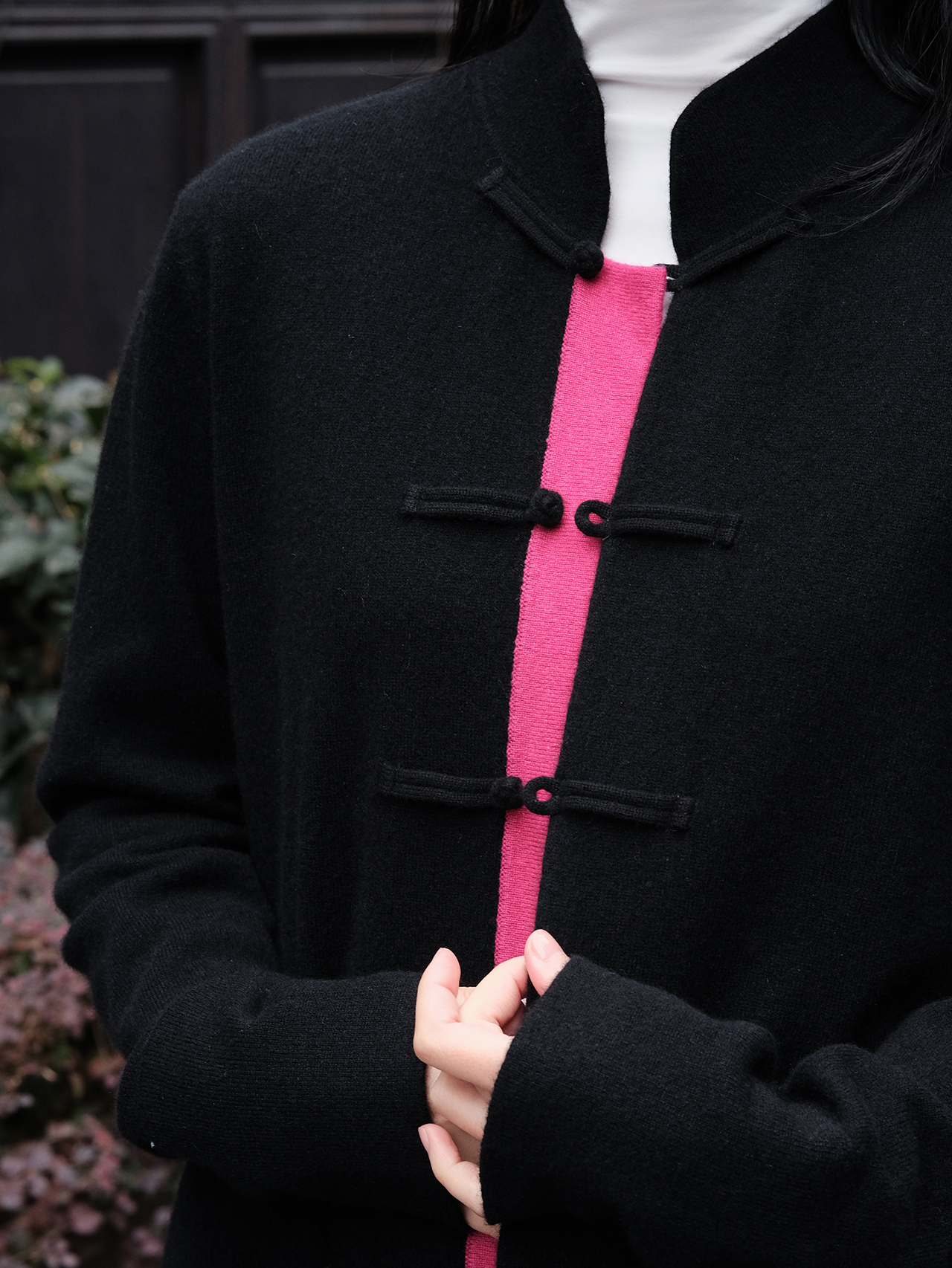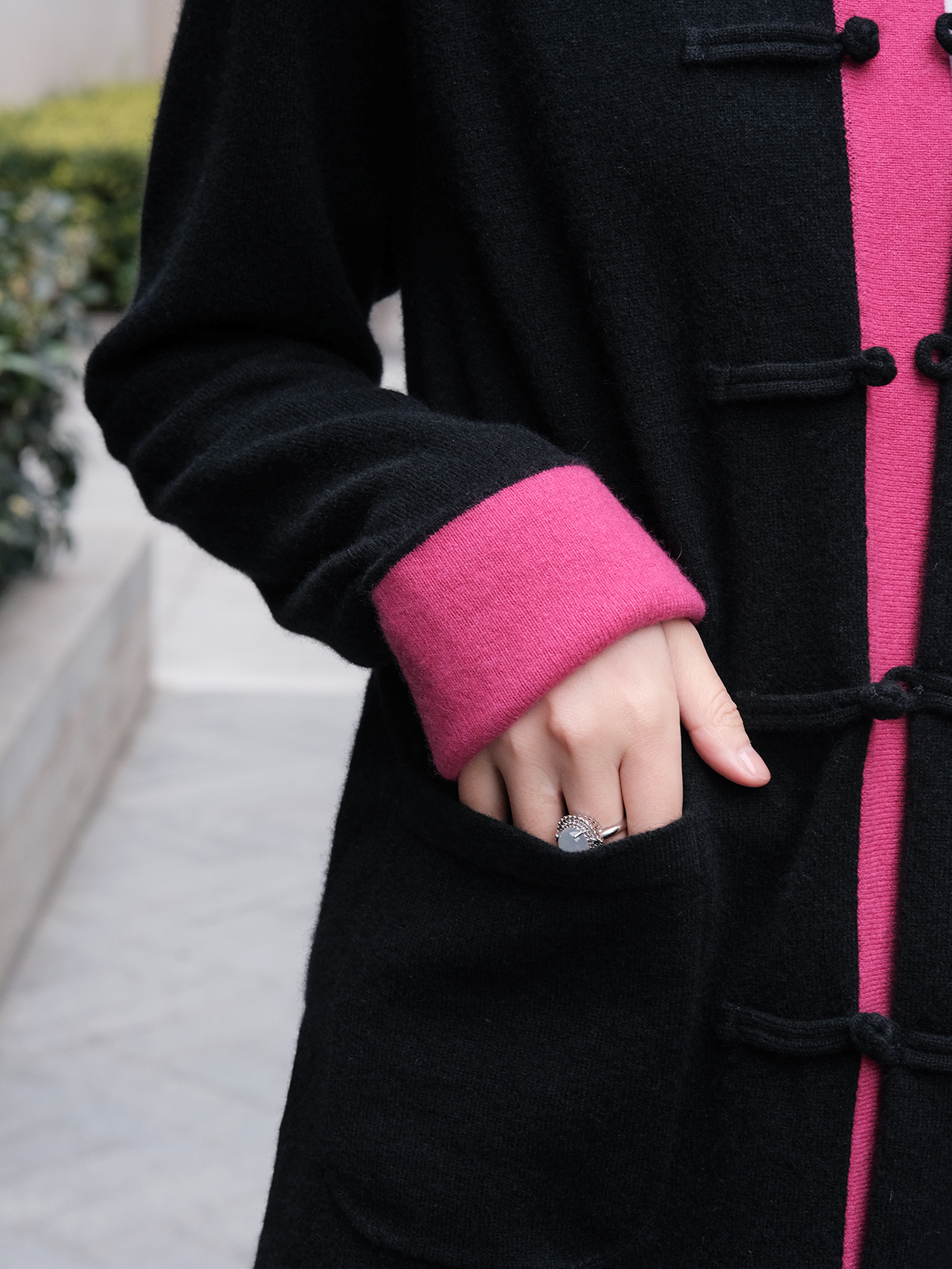 盛唐牡丹| 新中式女士针织羊绒衫(里玫红色)