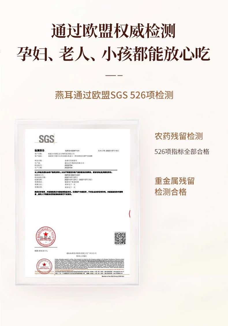 不像市面上的“三无”银耳,金燕耳银耳通过了欧盟SGS 508项检测,可以说市面上作为银耳它是独一份!